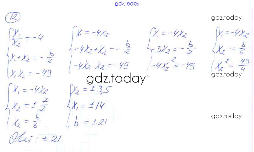Ответы к Решение. §22. Теорема Виета 12 Рабочей тетради по Алгебре для 8 класса Миндюк, Шлыкова Просвещение УМК 2016