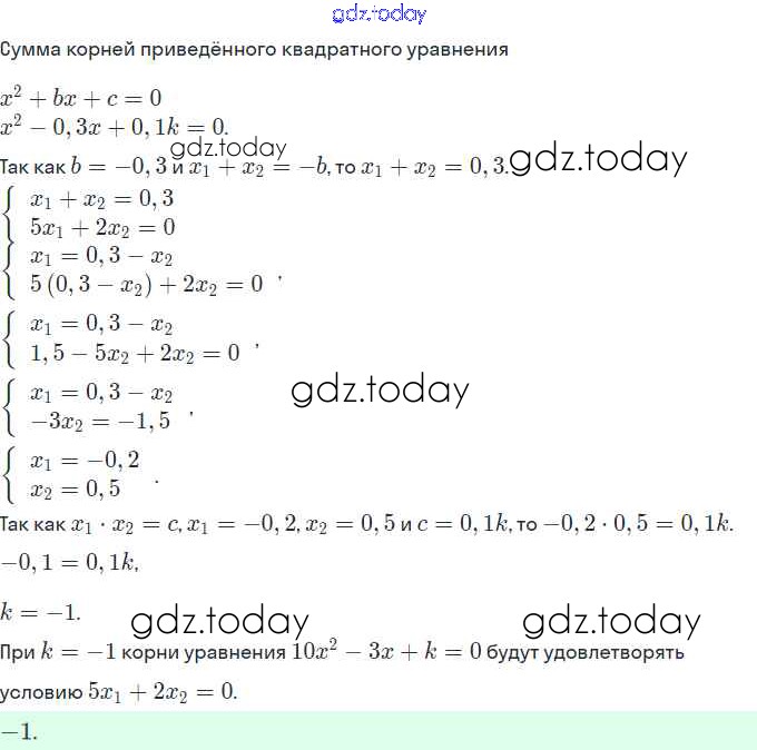 Ответы к Решение. §22. Теорема Виета 13 Рабочей тетради по Алгебре для 8 класса Миндюк, Шлыкова Просвещение УМК 2016