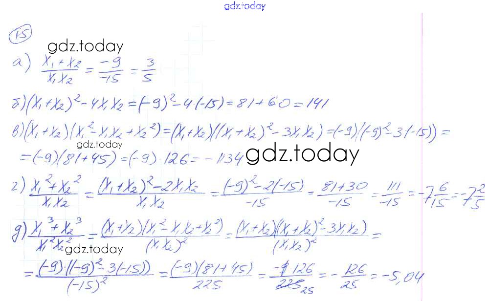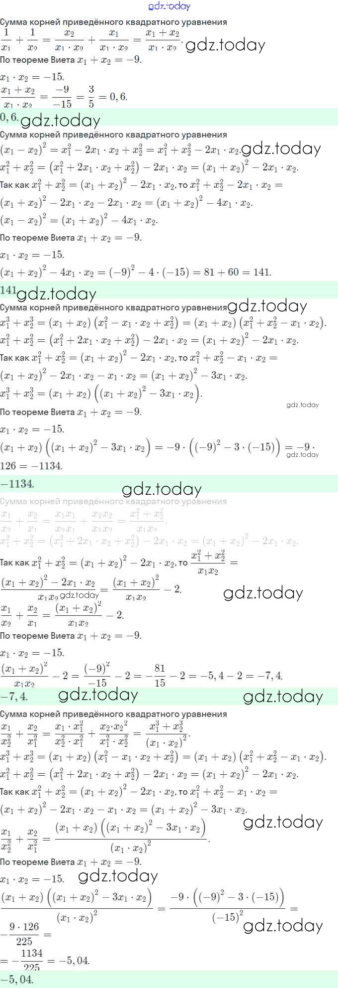 Ответы к Решение. §22. Теорема Виета 15 Рабочей тетради по Алгебре для 8 класса Миндюк, Шлыкова Просвещение УМК 2016