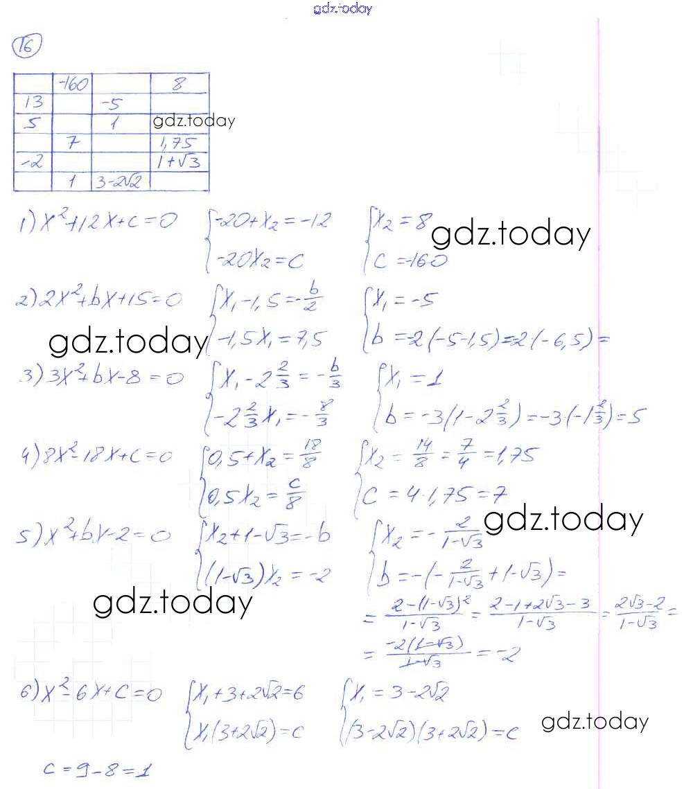 Ответы к Решение. §22. Теорема Виета 16 Рабочей тетради по Алгебре для 8 класса Миндюк, Шлыкова Просвещение УМК 2016