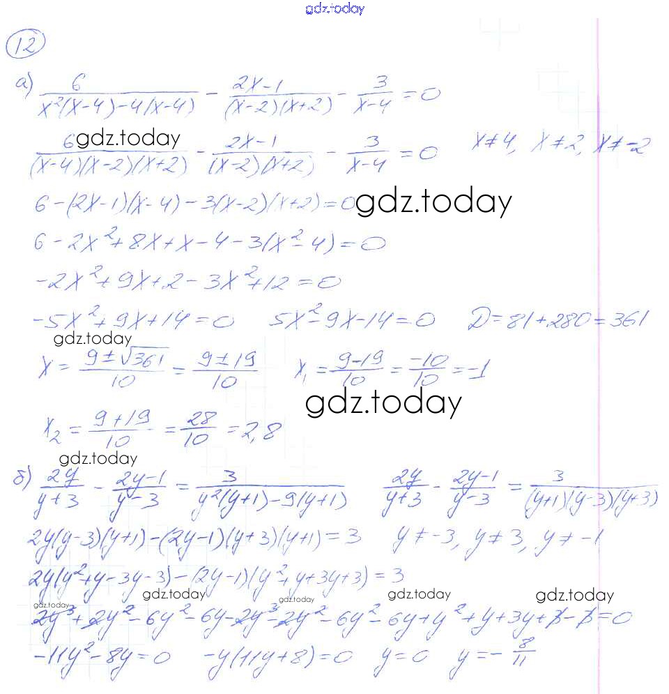 Ответы к Решение. §23. Решение дробных рациональных уравнений 12 Рабочей тетради по Алгебре для 8 класса Миндюк, Шлыкова Просвещение УМК 2016