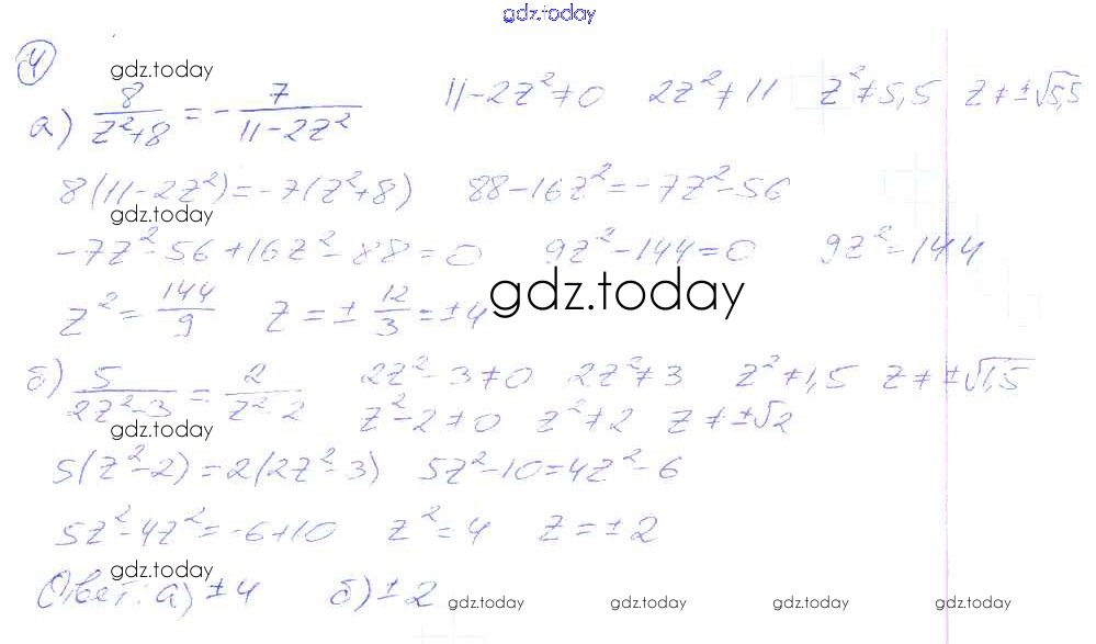 Ответы к Решение. §23. Решение дробных рациональных уравнений 4 Рабочей тетради по Алгебре для 8 класса Миндюк, Шлыкова Просвещение УМК 2016
