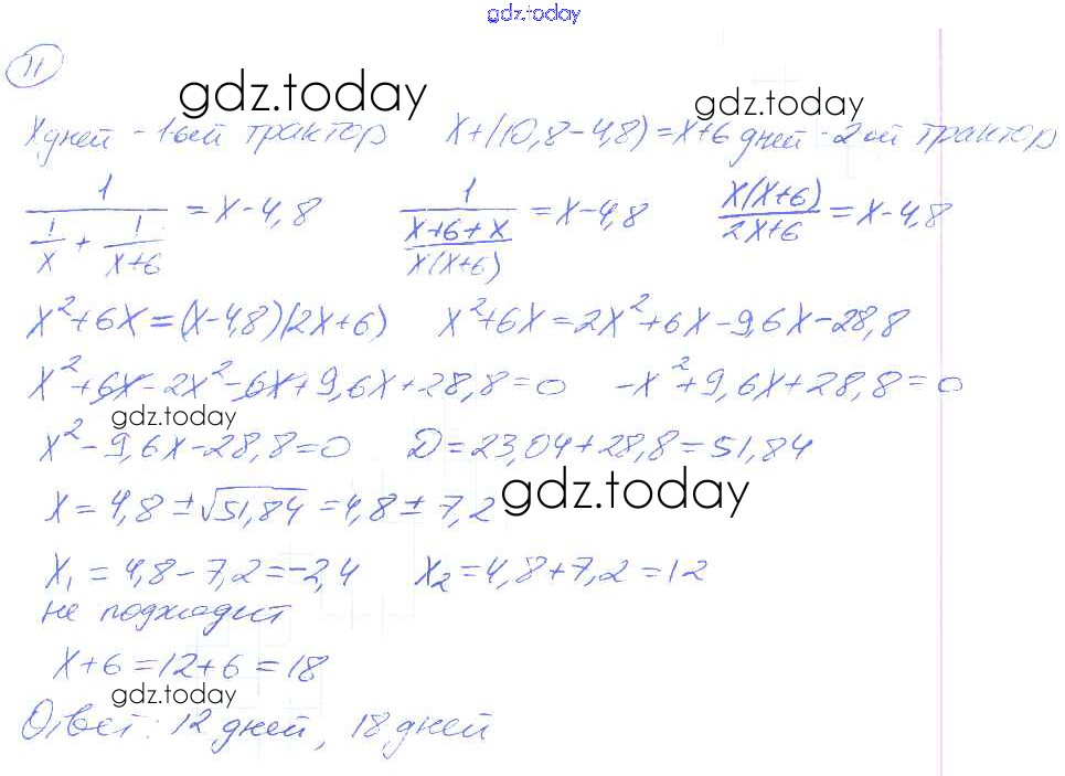 Ответы к Решение. §24. Решение задач с помощью рациональных уравнений 11 Рабочей тетради по Алгебре для 8 класса Миндюк, Шлыкова Просвещение УМК 2016