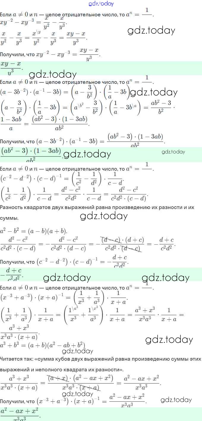 Ответы к Решение. §33. Определение степени с целым отрицательным показателем 10 Рабочей тетради по Алгебре для 8 класса Миндюк, Шлыкова Просвещение УМК 2016