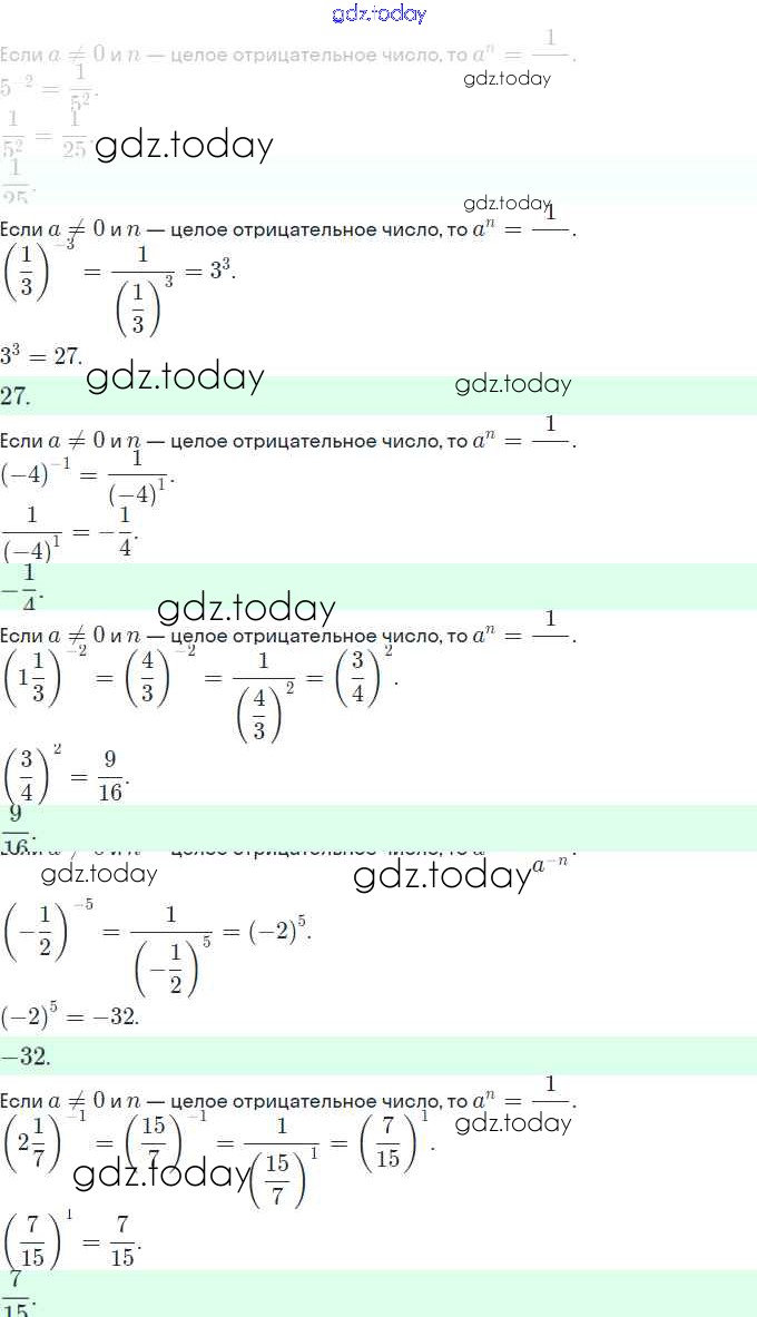 Ответы к Решение. §33. Определение степени с целым отрицательным показателем 5 Рабочей тетради по Алгебре для 8 класса Миндюк, Шлыкова Просвещение УМК 2016