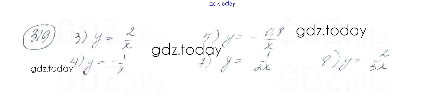 На страницах сайта gdz.today вы найдете учебный и вспомогательный материал, направленный на улучшения знаний школьной программы. ГДЗ - онлайн мир знаний §10. Функция. y=k/x и её график Решение к главе 1. Рациональные выражения 319 Учебнику по Алгебре для 8 класса Мерзляк, Полонский Вентана-граф Алгоритм успеха 2016