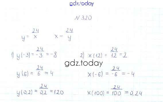На страницах сайта gdz.today вы найдете учебный и вспомогательный материал, направленный на улучшения знаний школьной программы. ГДЗ - онлайн мир знаний §10. Функция. y=k/x и её график Решение к главе 1. Рациональные выражения 320 Учебнику по Алгебре для 8 класса Мерзляк, Полонский Вентана-граф Алгоритм успеха 2016