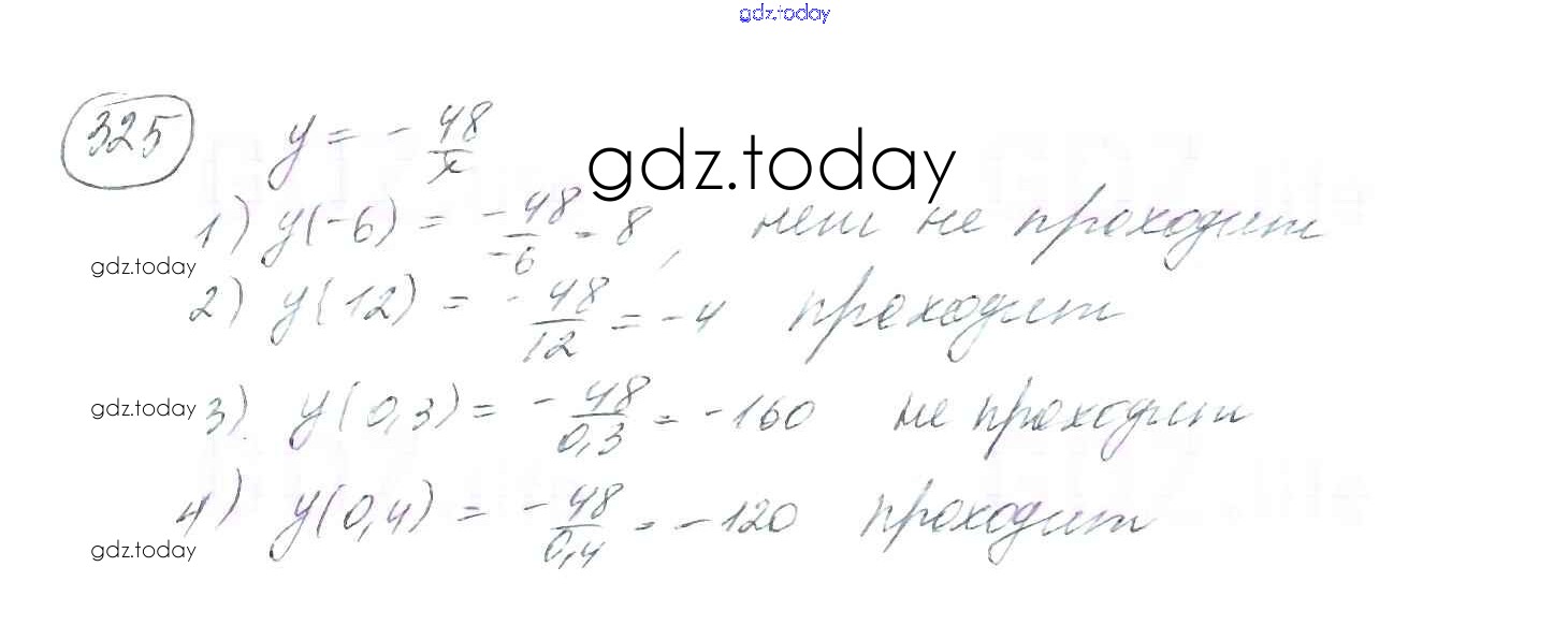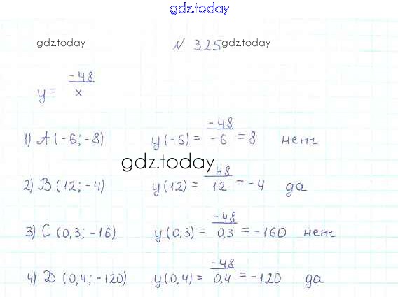 На страницах сайта gdz.today вы найдете учебный и вспомогательный материал, направленный на улучшения знаний школьной программы. ГДЗ - онлайн мир знаний §10. Функция. y=k/x и её график Решение к главе 1. Рациональные выражения 325 Учебнику по Алгебре для 8 класса Мерзляк, Полонский Вентана-граф Алгоритм успеха 2016