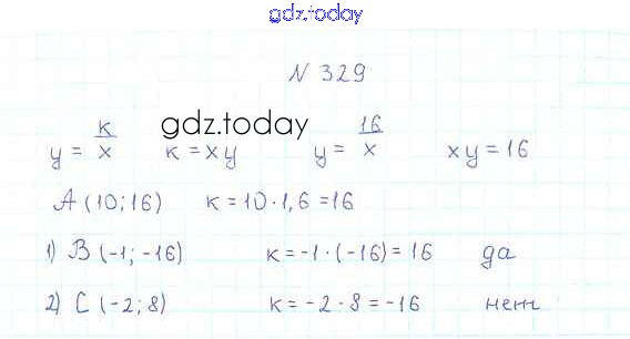 На страницах сайта gdz.today вы найдете учебный и вспомогательный материал, направленный на улучшения знаний школьной программы. ГДЗ - онлайн мир знаний §10. Функция. y=k/x и её график Решение к главе 1. Рациональные выражения 329 Учебнику по Алгебре для 8 класса Мерзляк, Полонский Вентана-граф Алгоритм успеха 2016