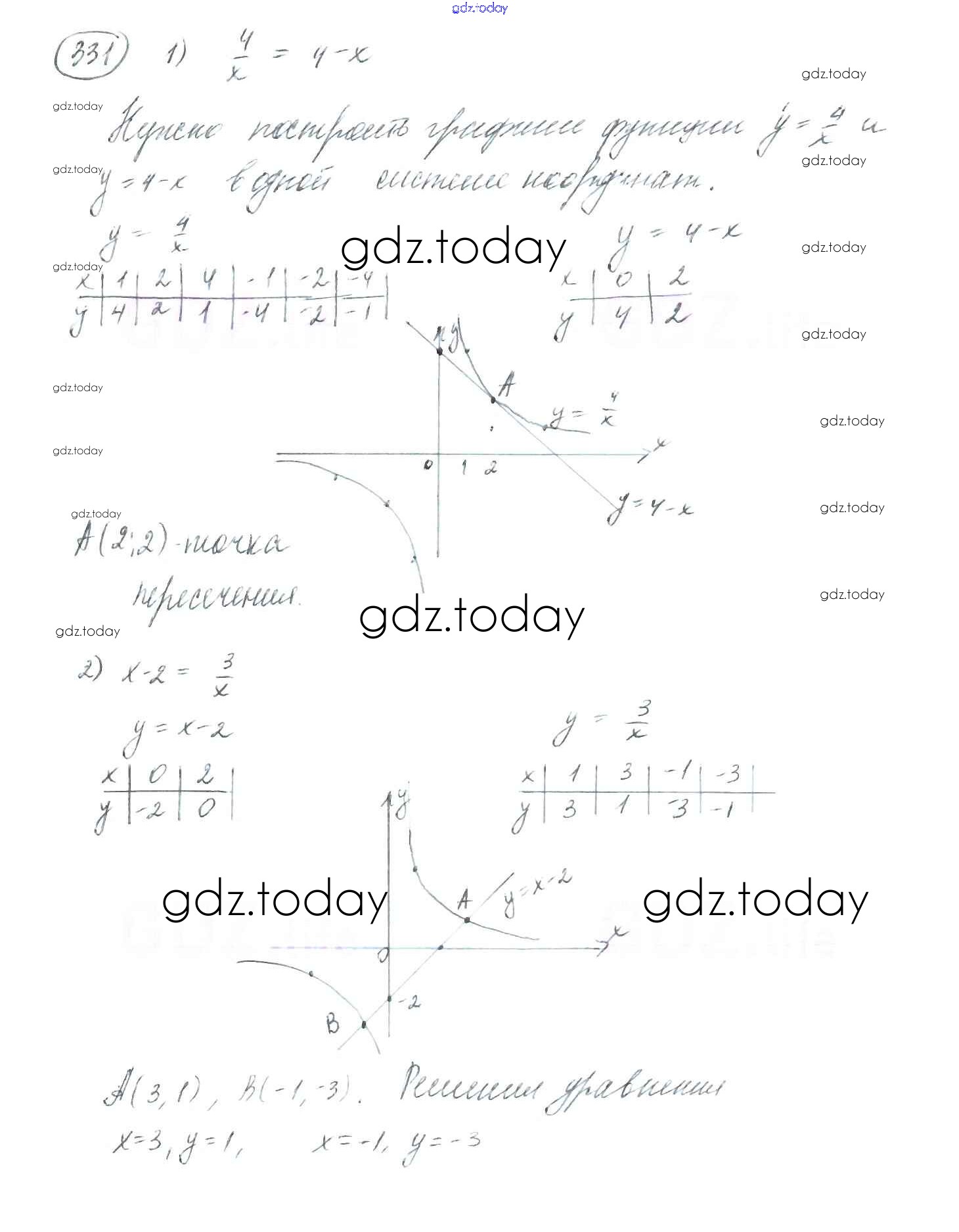На страницах сайта gdz.today вы найдете учебный и вспомогательный материал, направленный на улучшения знаний школьной программы. ГДЗ - онлайн мир знаний §10. Функция. y=k/x и её график Решение к главе 1. Рациональные выражения 331 Учебнику по Алгебре для 8 класса Мерзляк, Полонский Вентана-граф Алгоритм успеха 2016