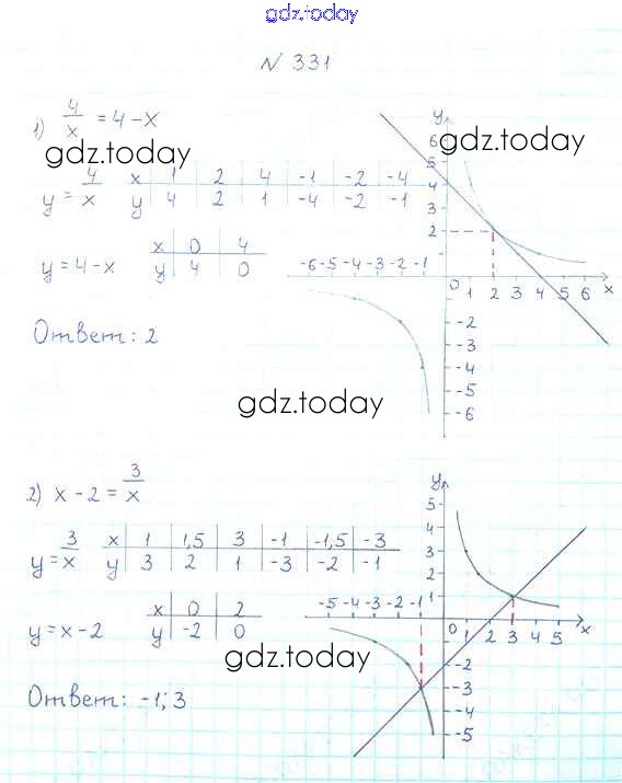 Ответы к §10. Функция. y=k/x и её график Решение к главе 1. Рациональные выражения 331 Учебнику по Алгебре для 8 класса Мерзляк, Полонский Вентана-граф Алгоритм успеха 2016