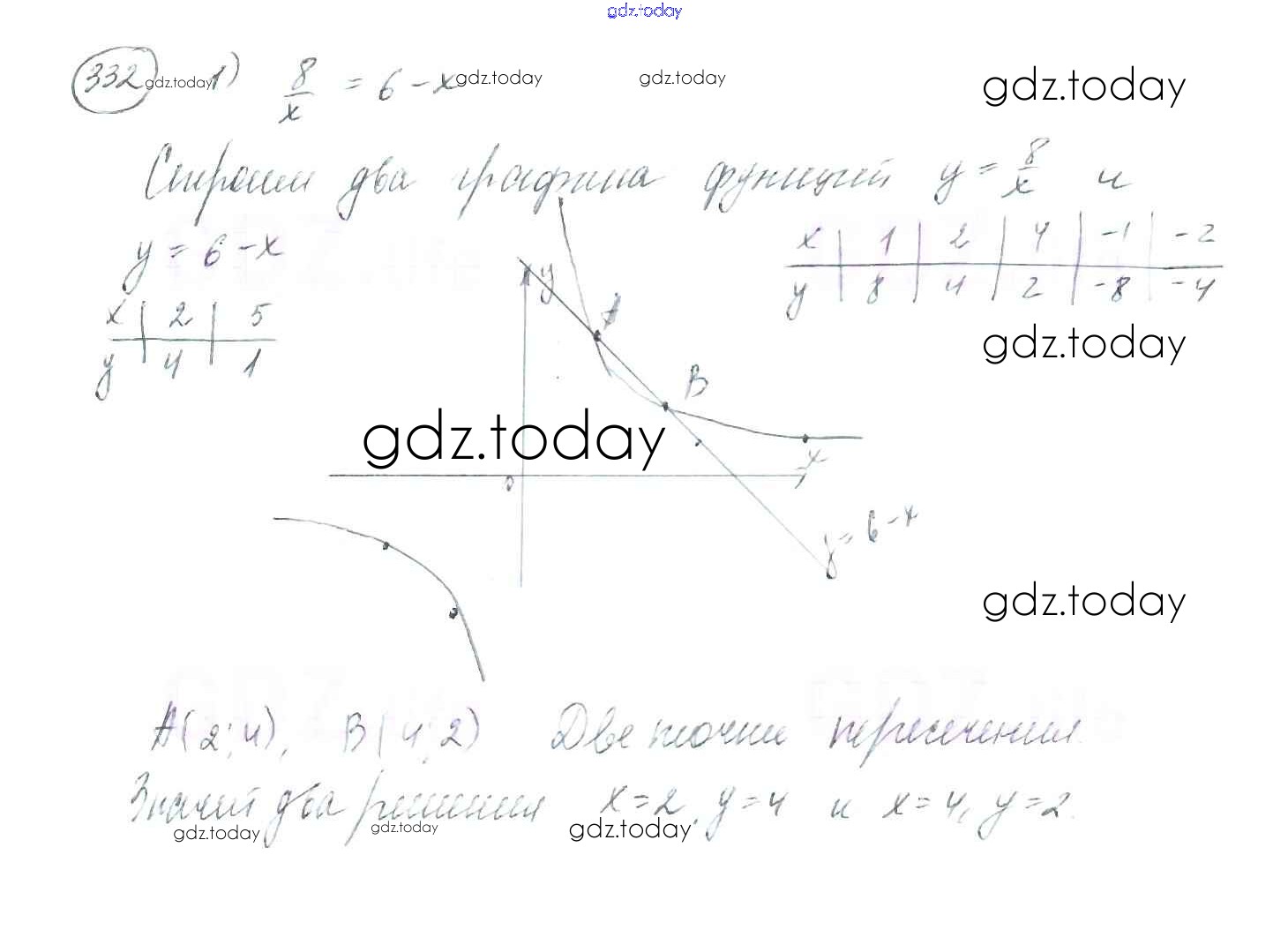 На страницах сайта gdz.today вы найдете учебный и вспомогательный материал, направленный на улучшения знаний школьной программы. ГДЗ - онлайн мир знаний §10. Функция. y=k/x и её график Решение к главе 1. Рациональные выражения 332 Учебнику по Алгебре для 8 класса Мерзляк, Полонский Вентана-граф Алгоритм успеха 2016