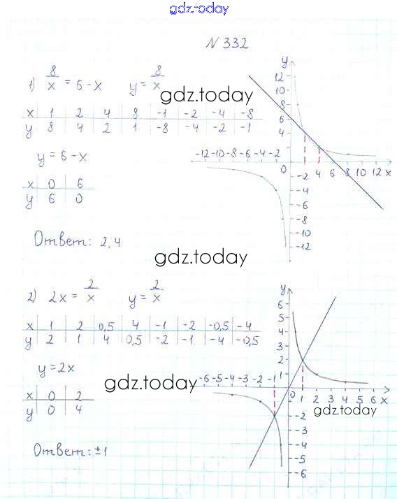 Ответы к §10. Функция. y=k/x и её график Решение к главе 1. Рациональные выражения 332 Учебнику по Алгебре для 8 класса Мерзляк, Полонский Вентана-граф Алгоритм успеха 2016