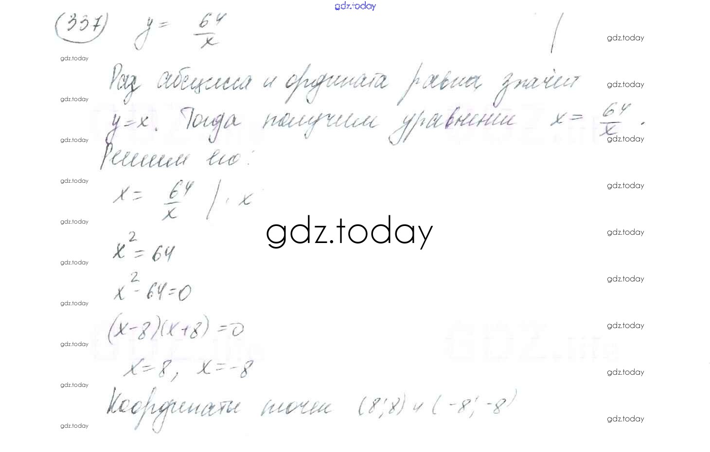 На страницах сайта gdz.today вы найдете учебный и вспомогательный материал, направленный на улучшения знаний школьной программы. ГДЗ - онлайн мир знаний §10. Функция. y=k/x и её график Решение к главе 1. Рациональные выражения 337 Учебнику по Алгебре для 8 класса Мерзляк, Полонский Вентана-граф Алгоритм успеха 2016