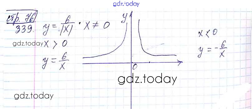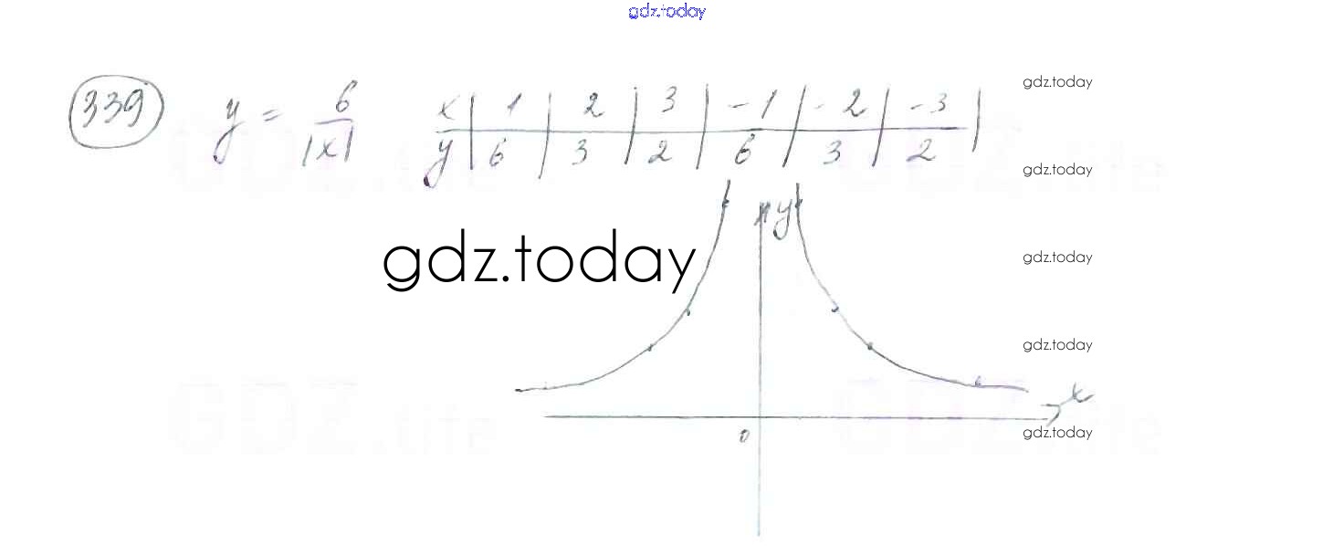 На страницах сайта gdz.today вы найдете учебный и вспомогательный материал, направленный на улучшения знаний школьной программы. ГДЗ - онлайн мир знаний §10. Функция. y=k/x и её график Решение к главе 1. Рациональные выражения 339 Учебнику по Алгебре для 8 класса Мерзляк, Полонский Вентана-граф Алгоритм успеха 2016