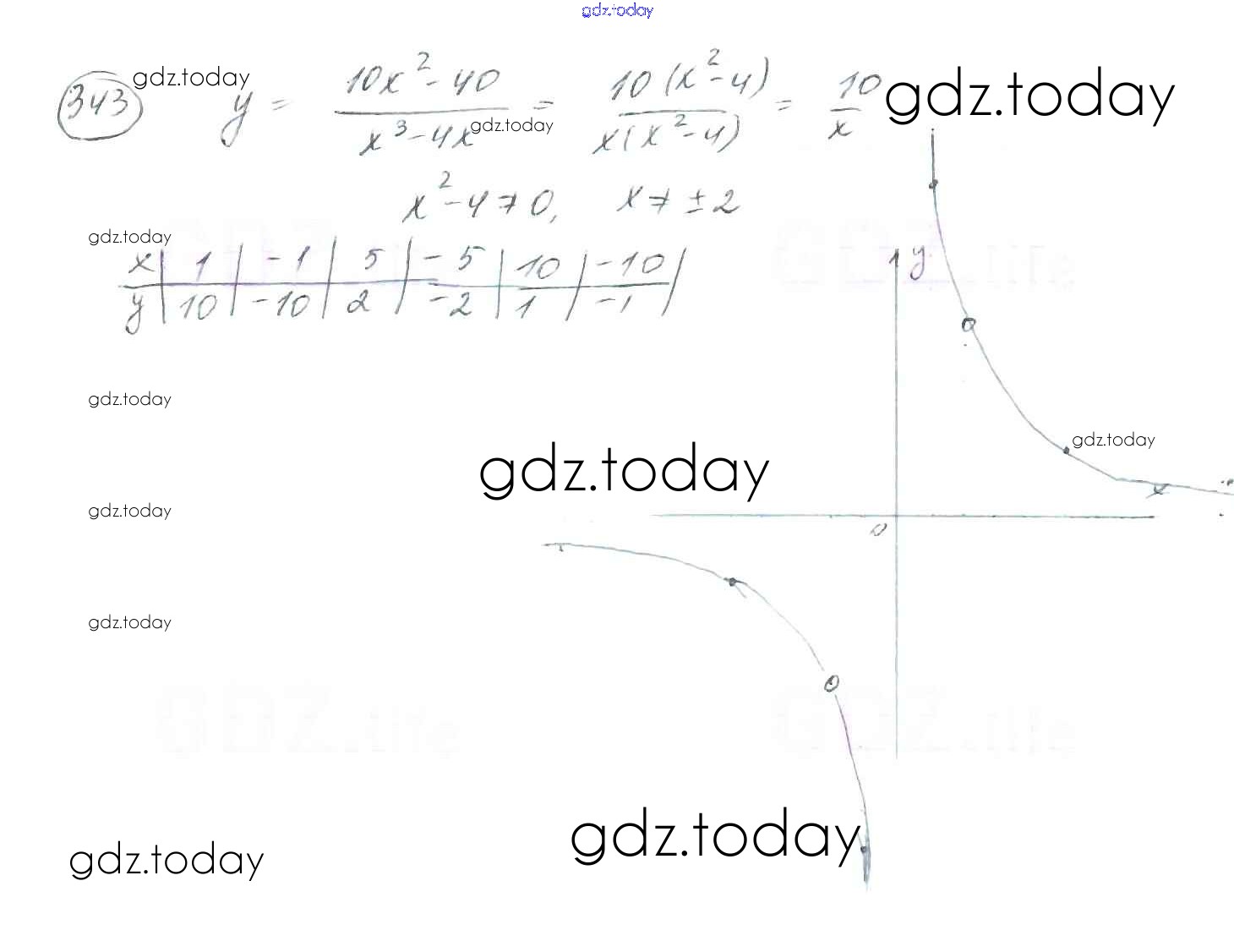 На страницах сайта gdz.today вы найдете учебный и вспомогательный материал, направленный на улучшения знаний школьной программы. ГДЗ - онлайн мир знаний §10. Функция. y=k/x и её график Решение к главе 1. Рациональные выражения 343 Учебнику по Алгебре для 8 класса Мерзляк, Полонский Вентана-граф Алгоритм успеха 2016