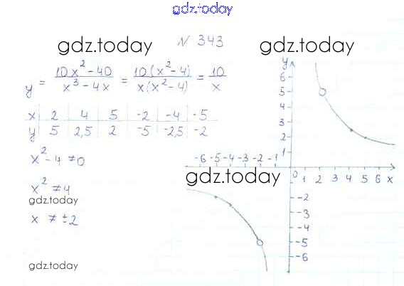Ответы к §10. Функция. y=k/x и её график Решение к главе 1. Рациональные выражения 343 Учебнику по Алгебре для 8 класса Мерзляк, Полонский Вентана-граф Алгоритм успеха 2016