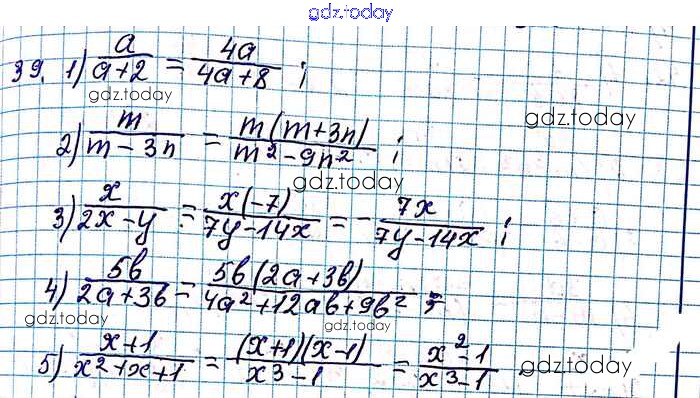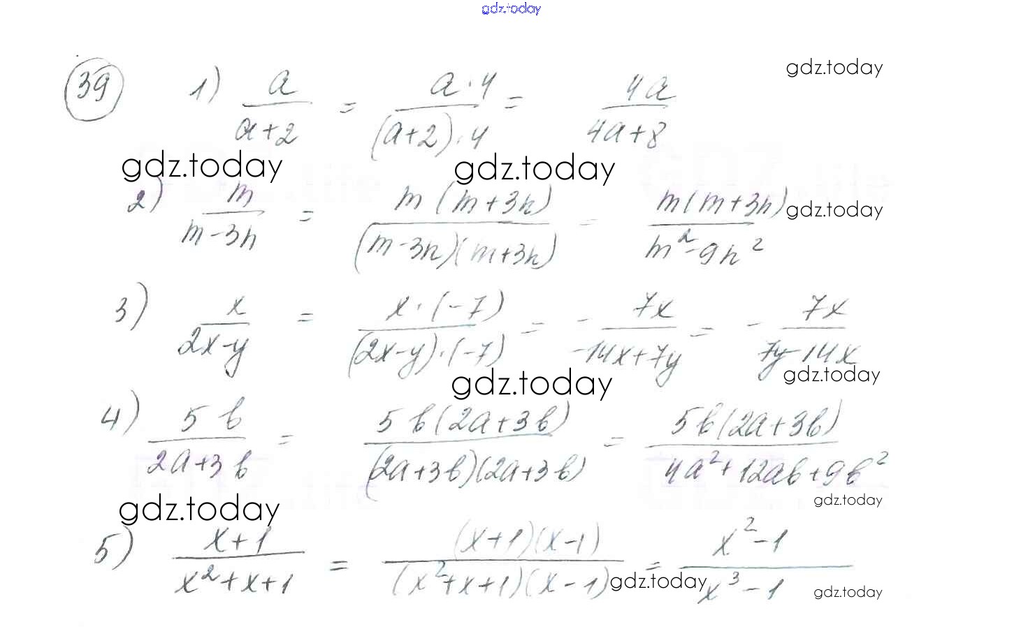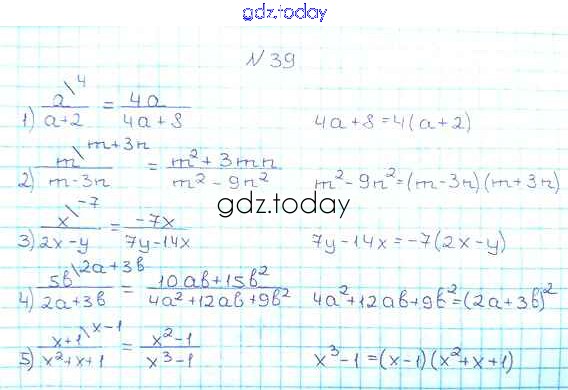 На страницах сайта gdz.today вы найдете учебный и вспомогательный материал, направленный на улучшения знаний школьной программы. ГДЗ - онлайн мир знаний §2. Основное свойство рациональной дроби Решение к главе 1. Рациональные выражения 39 Учебнику по Алгебре для 8 класса Мерзляк, Полонский Вентана-граф Алгоритм успеха 2016