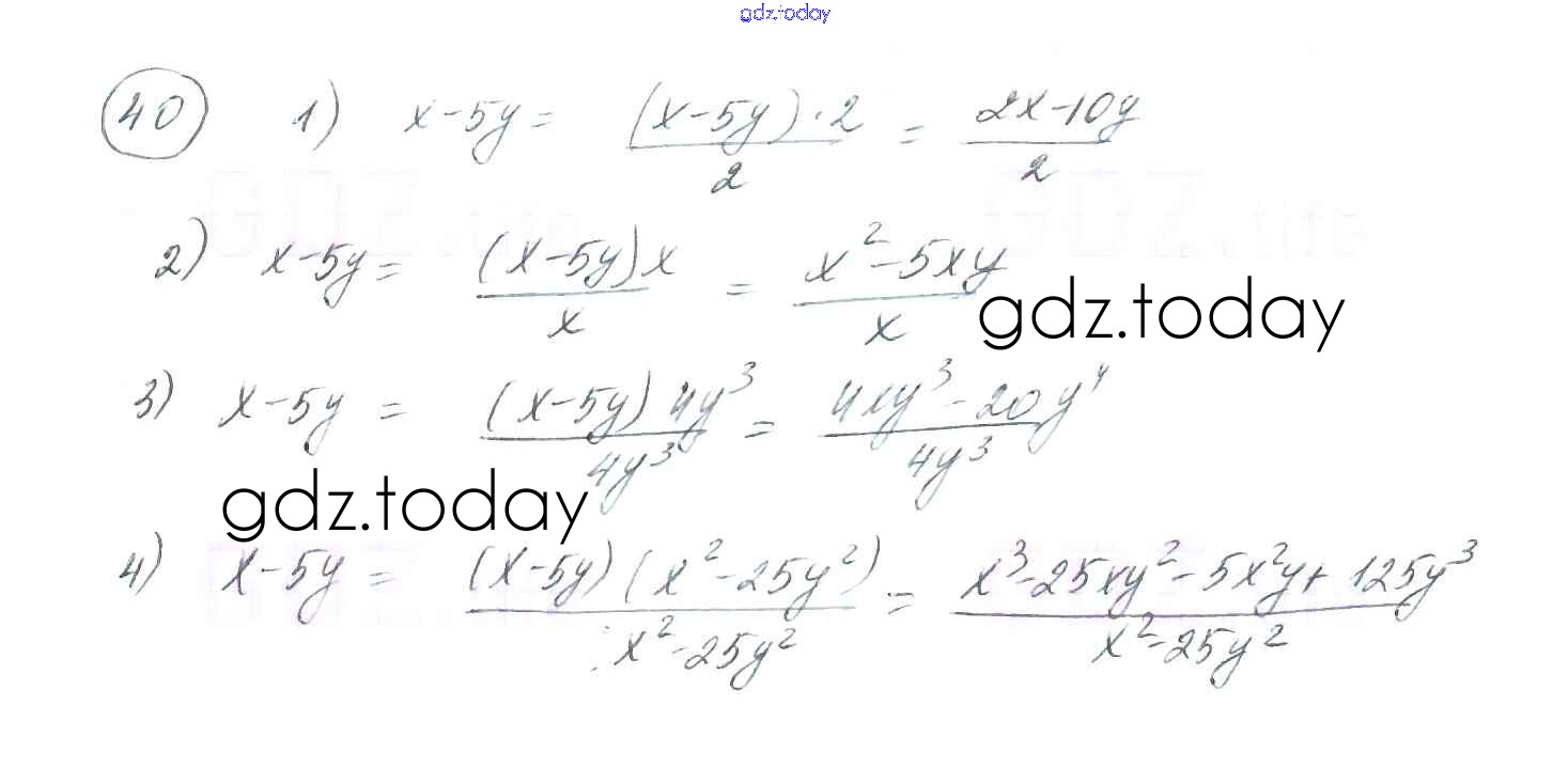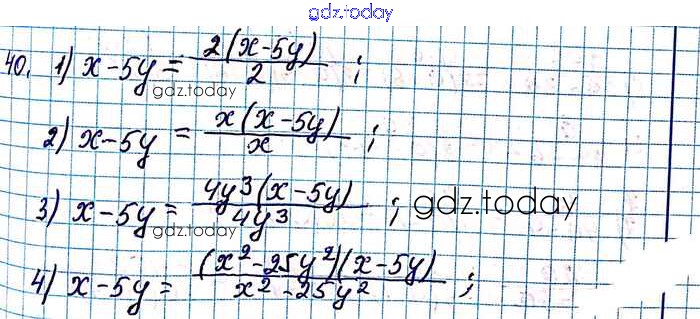 На страницах сайта gdz.today вы найдете учебный и вспомогательный материал, направленный на улучшения знаний школьной программы. ГДЗ - онлайн мир знаний §2. Основное свойство рациональной дроби Решение к главе 1. Рациональные выражения 40 Учебнику по Алгебре для 8 класса Мерзляк, Полонский Вентана-граф Алгоритм успеха 2016
