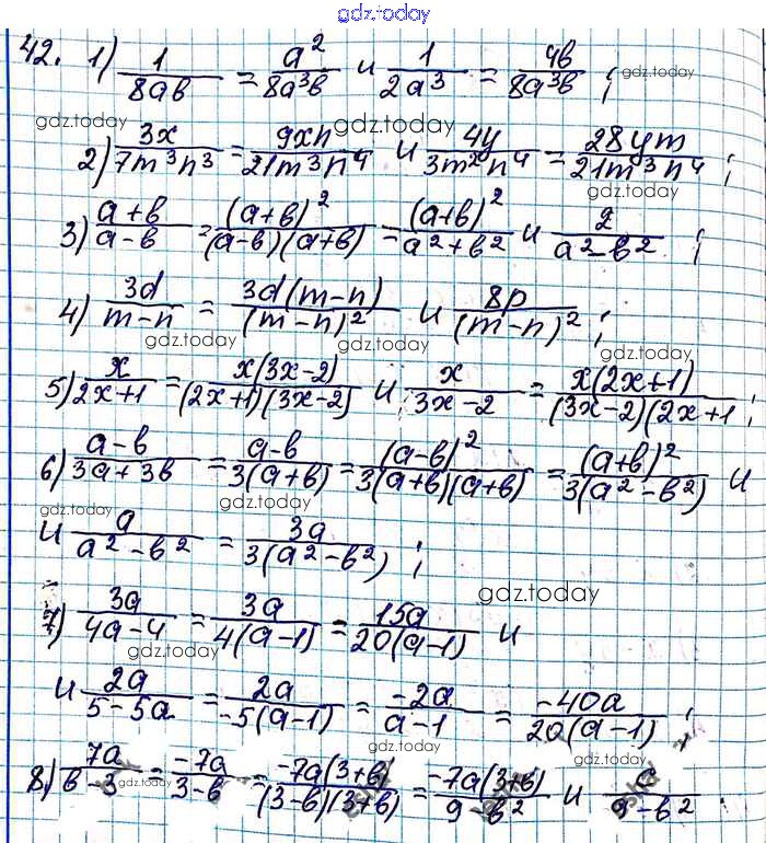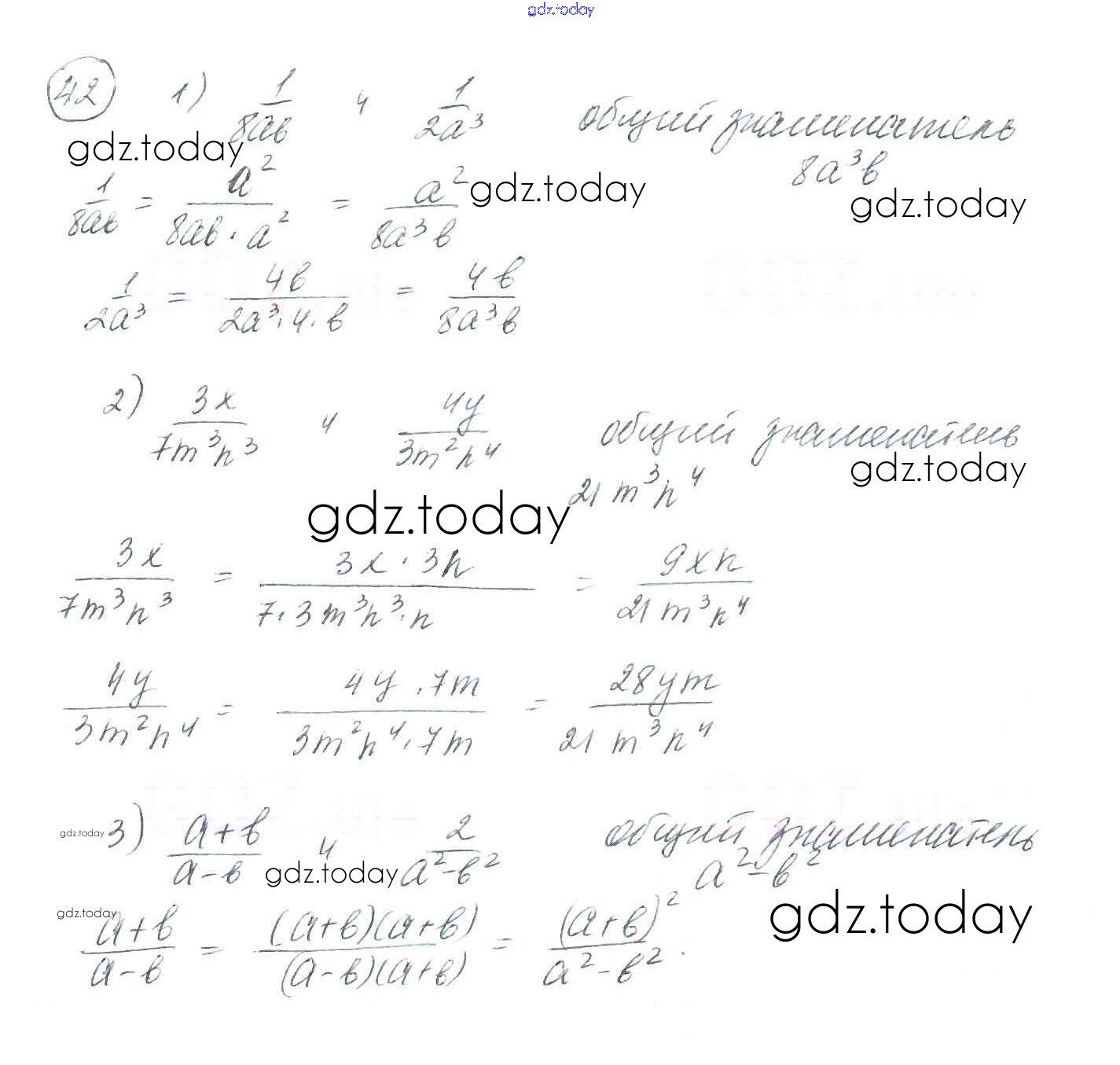 На страницах сайта gdz.today вы найдете учебный и вспомогательный материал, направленный на улучшения знаний школьной программы. ГДЗ - онлайн мир знаний §2. Основное свойство рациональной дроби Решение к главе 1. Рациональные выражения 42 Учебнику по Алгебре для 8 класса Мерзляк, Полонский Вентана-граф Алгоритм успеха 2016