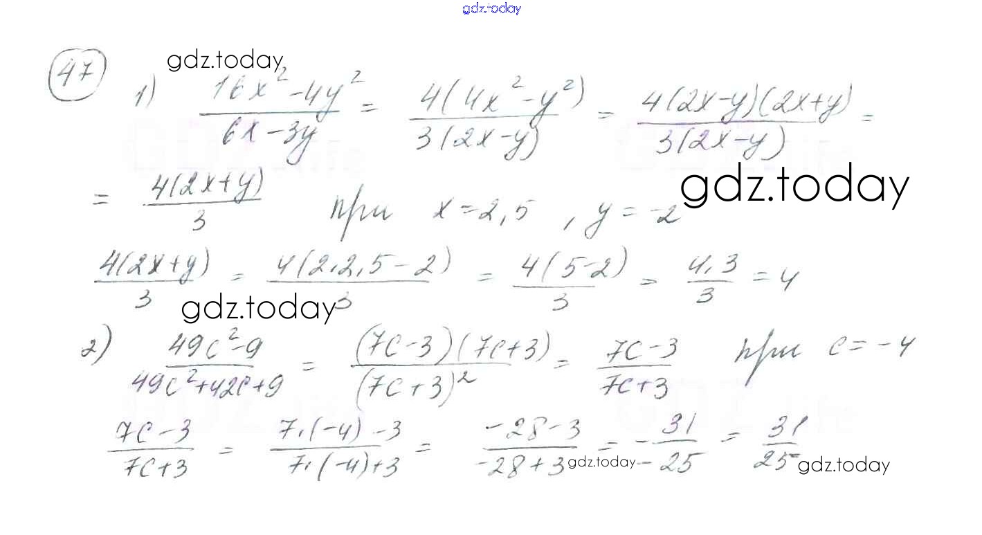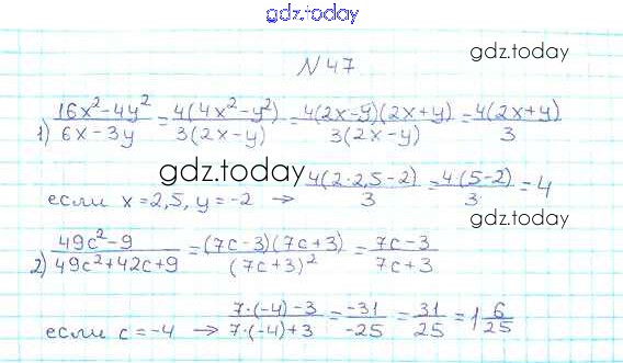 На страницах сайта gdz.today вы найдете учебный и вспомогательный материал, направленный на улучшения знаний школьной программы. ГДЗ - онлайн мир знаний §2. Основное свойство рациональной дроби Решение к главе 1. Рациональные выражения 47 Учебнику по Алгебре для 8 класса Мерзляк, Полонский Вентана-граф Алгоритм успеха 2016