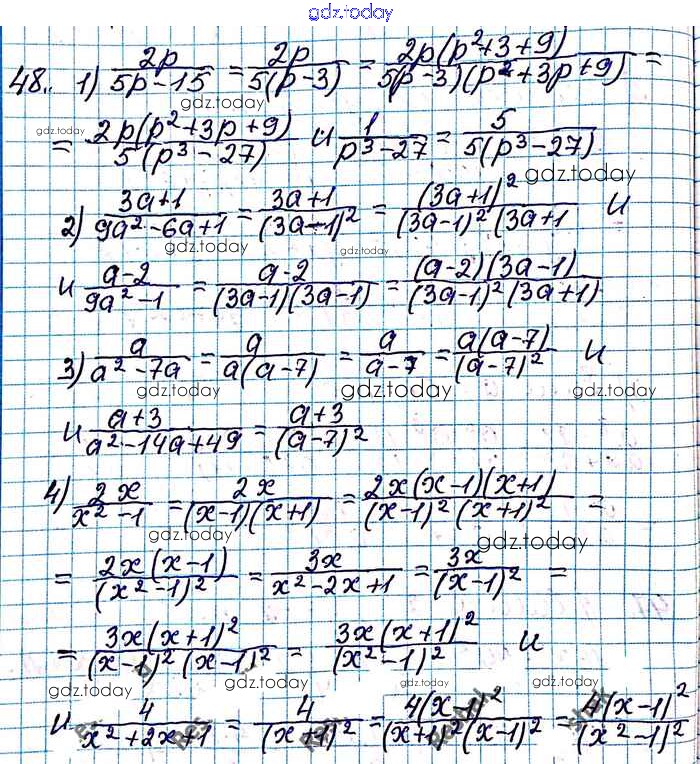 На страницах сайта gdz.today вы найдете учебный и вспомогательный материал, направленный на улучшения знаний школьной программы. ГДЗ - онлайн мир знаний §2. Основное свойство рациональной дроби Решение к главе 1. Рациональные выражения 48 Учебнику по Алгебре для 8 класса Мерзляк, Полонский Вентана-граф Алгоритм успеха 2016