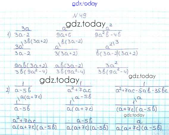 На страницах сайта gdz.today вы найдете учебный и вспомогательный материал, направленный на улучшения знаний школьной программы. ГДЗ - онлайн мир знаний §2. Основное свойство рациональной дроби Решение к главе 1. Рациональные выражения 49 Учебнику по Алгебре для 8 класса Мерзляк, Полонский Вентана-граф Алгоритм успеха 2016