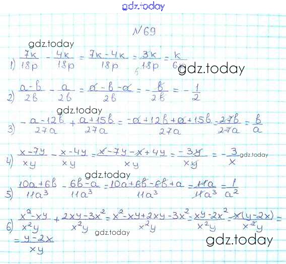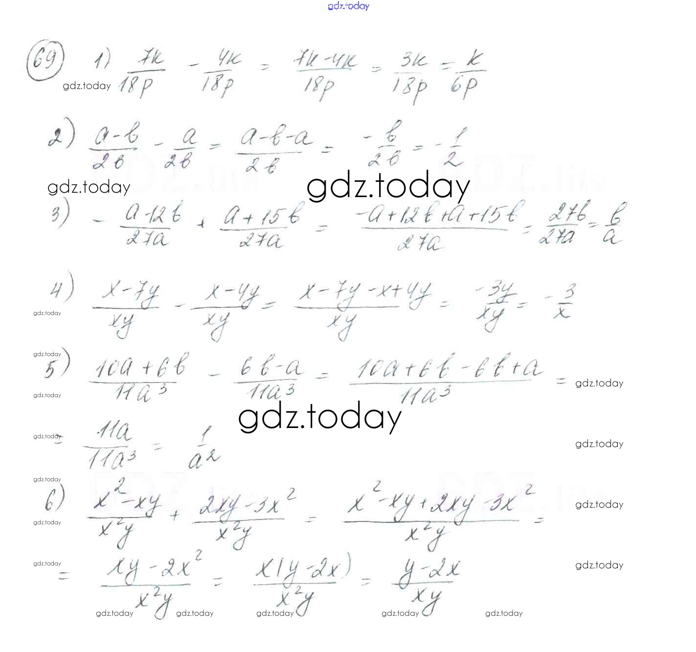На страницах сайта gdz.today вы найдете учебный и вспомогательный материал, направленный на улучшения знаний школьной программы. ГДЗ - онлайн мир знаний §3. Сложение и вычитание рациональных дробей с одинаковыми знаменателями Решение к главе 1. Рациональные выражения 69 Учебнику по Алгебре для 8 класса Мерзляк, Полонский Вентана-граф Алгоритм успеха 2016