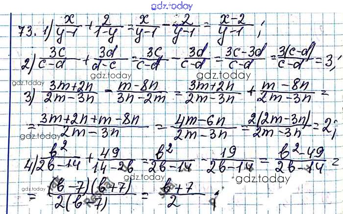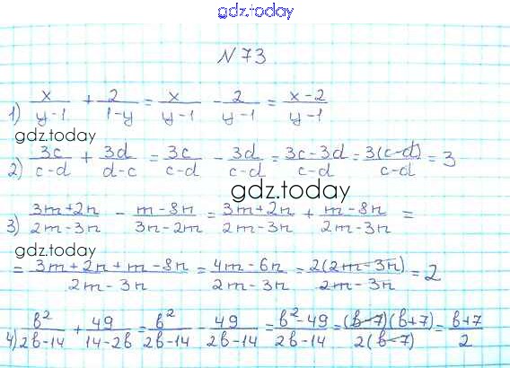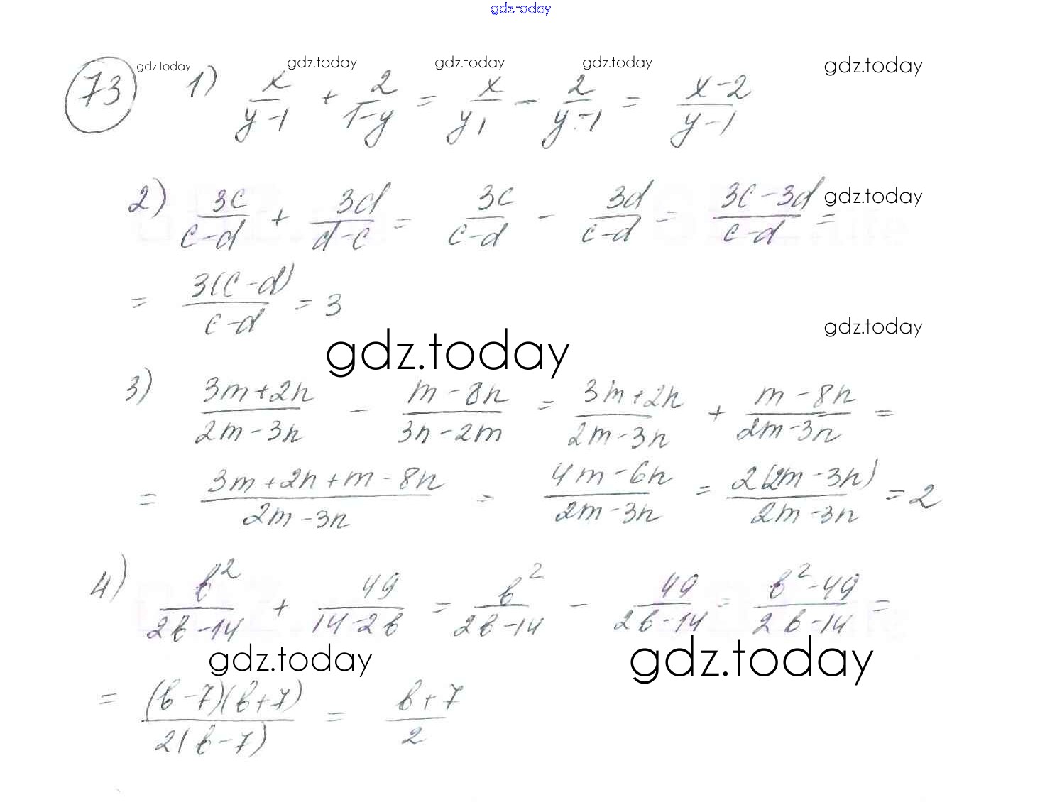 На страницах сайта gdz.today вы найдете учебный и вспомогательный материал, направленный на улучшения знаний школьной программы. ГДЗ - онлайн мир знаний §3. Сложение и вычитание рациональных дробей с одинаковыми знаменателями Решение к главе 1. Рациональные выражения 73 Учебнику по Алгебре для 8 класса Мерзляк, Полонский Вентана-граф Алгоритм успеха 2016