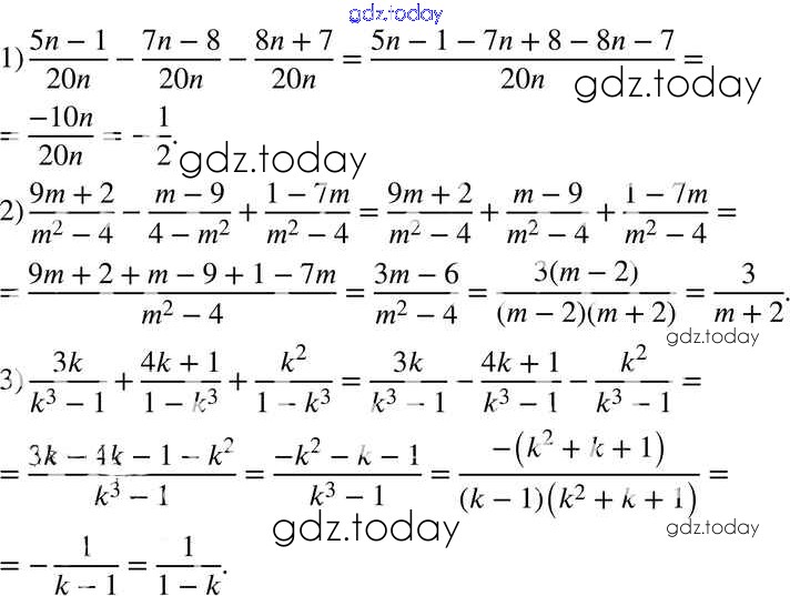 Ответы к §3. Сложение и вычитание рациональных дробей с одинаковыми знаменателями Решение к главе 1. Рациональные выражения 76 Учебнику по Алгебре для 8 класса Мерзляк, Полонский Вентана-граф Алгоритм успеха 2016