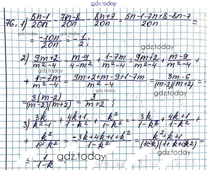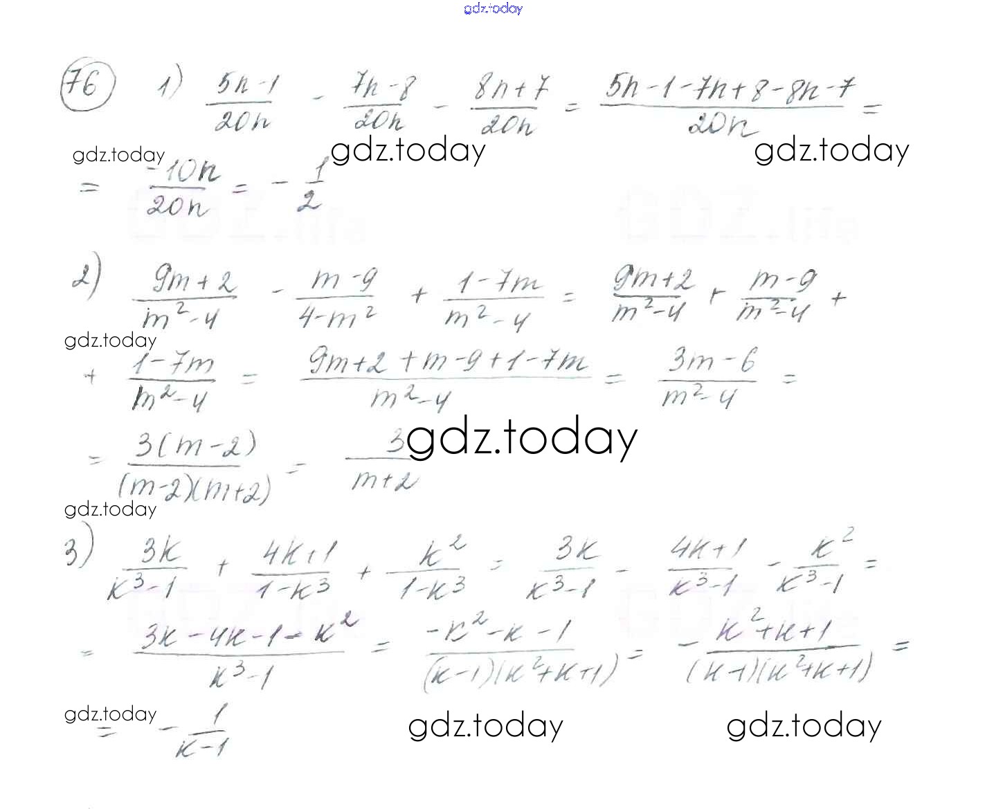 На страницах сайта gdz.today вы найдете учебный и вспомогательный материал, направленный на улучшения знаний школьной программы. ГДЗ - онлайн мир знаний §3. Сложение и вычитание рациональных дробей с одинаковыми знаменателями Решение к главе 1. Рациональные выражения 76 Учебнику по Алгебре для 8 класса Мерзляк, Полонский Вентана-граф Алгоритм успеха 2016