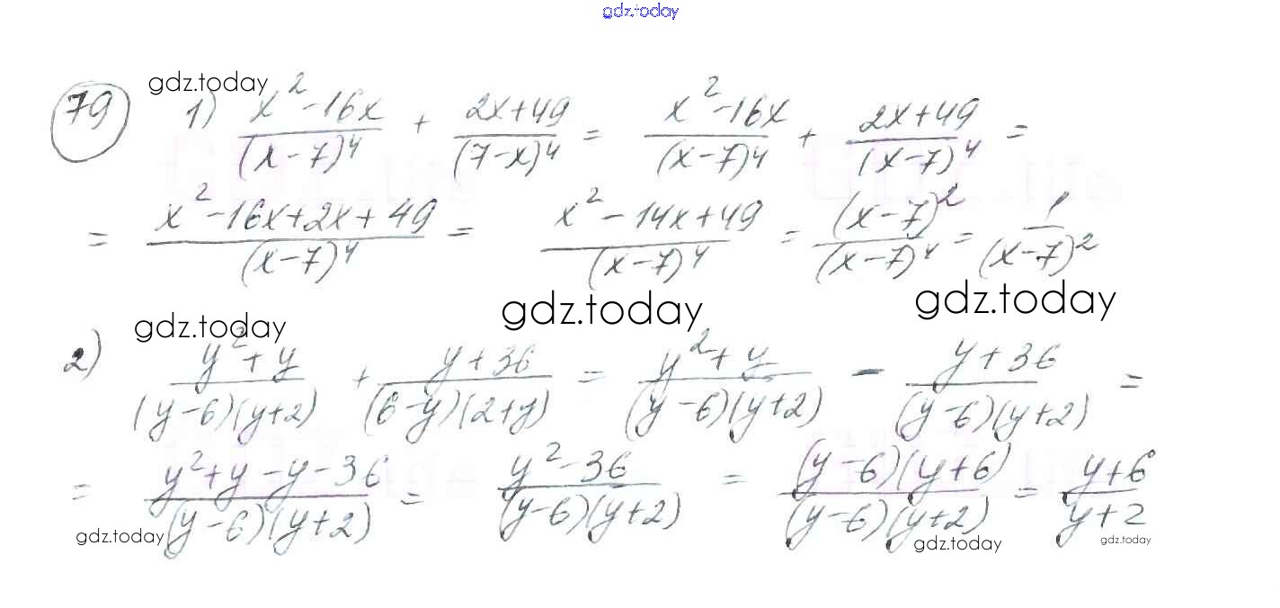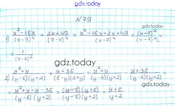 На страницах сайта gdz.today вы найдете учебный и вспомогательный материал, направленный на улучшения знаний школьной программы. ГДЗ - онлайн мир знаний §3. Сложение и вычитание рациональных дробей с одинаковыми знаменателями Решение к главе 1. Рациональные выражения 79 Учебнику по Алгебре для 8 класса Мерзляк, Полонский Вентана-граф Алгоритм успеха 2016