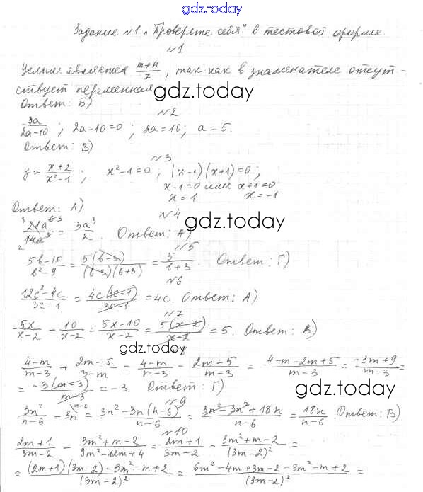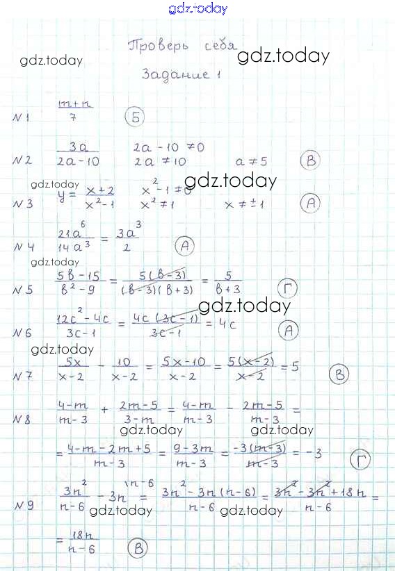 На страницах сайта gdz.today вы найдете учебный и вспомогательный материал, направленный на улучшения знаний школьной программы. ГДЗ - онлайн мир знаний Проверь себя №1 Решение к главе 1. Рациональные выражения 1 Учебнику по Алгебре для 8 класса Мерзляк, Полонский Вентана-граф Алгоритм успеха 2016