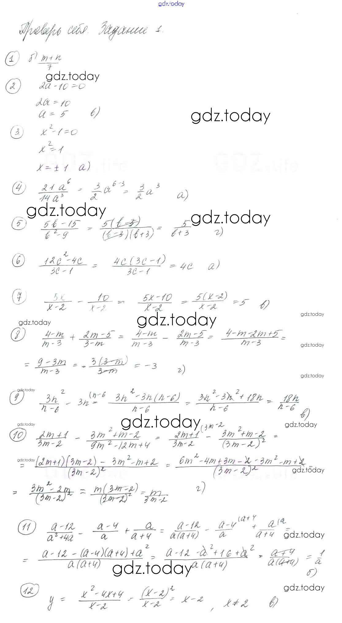 Ответы к Проверь себя №1 Решение к главе 1. Рациональные выражения 1 Учебнику по Алгебре для 8 класса Мерзляк, Полонский Вентана-граф Алгоритм успеха 2016
