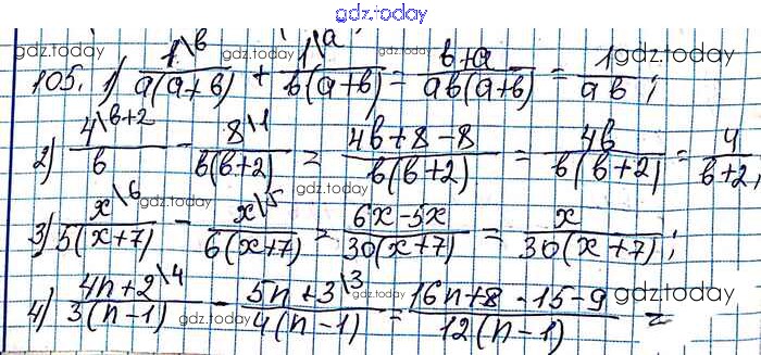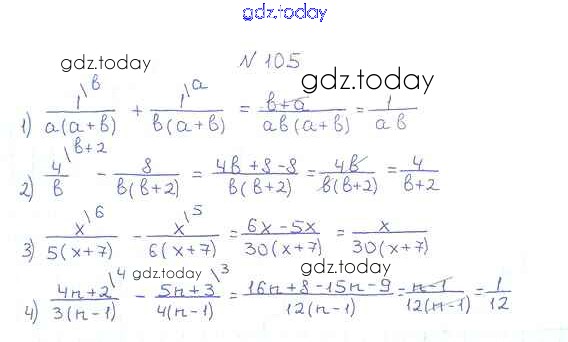 На страницах сайта gdz.today вы найдете учебный и вспомогательный материал, направленный на улучшения знаний школьной программы. ГДЗ - онлайн мир знаний §4. Сложение и вычитание рациональных дробей с разными знаменателями Решение к главе 1. Рациональные выражения 105 Учебнику по Алгебре для 8 класса Мерзляк, Полонский Вентана-граф Алгоритм успеха 2016