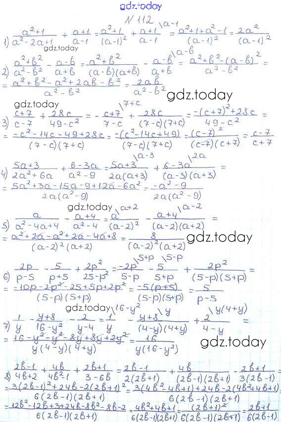 Ответы к §4. Сложение и вычитание рациональных дробей с разными знаменателями Решение к главе 1. Рациональные выражения 112 Учебнику по Алгебре для 8 класса Мерзляк, Полонский Вентана-граф Алгоритм успеха 2016