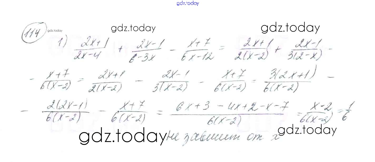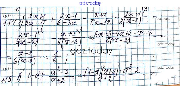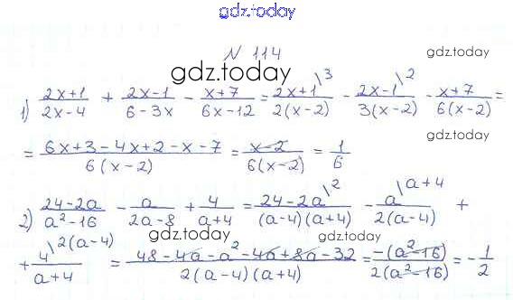 На страницах сайта gdz.today вы найдете учебный и вспомогательный материал, направленный на улучшения знаний школьной программы. ГДЗ - онлайн мир знаний §4. Сложение и вычитание рациональных дробей с разными знаменателями Решение к главе 1. Рациональные выражения 114 Учебнику по Алгебре для 8 класса Мерзляк, Полонский Вентана-граф Алгоритм успеха 2016