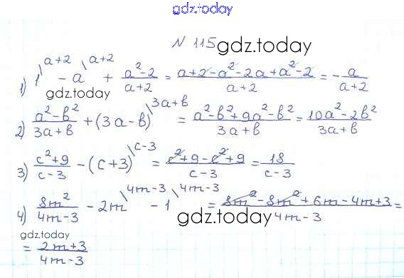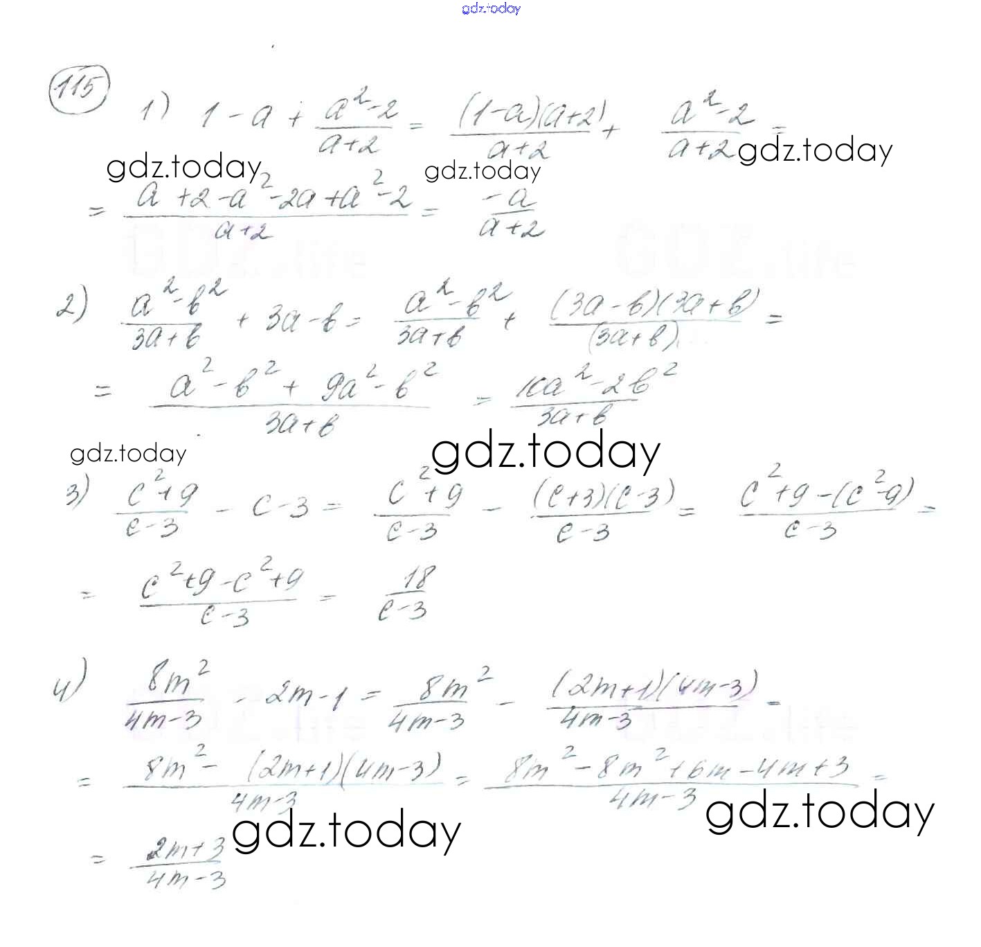 На страницах сайта gdz.today вы найдете учебный и вспомогательный материал, направленный на улучшения знаний школьной программы. ГДЗ - онлайн мир знаний §4. Сложение и вычитание рациональных дробей с разными знаменателями Решение к главе 1. Рациональные выражения 115 Учебнику по Алгебре для 8 класса Мерзляк, Полонский Вентана-граф Алгоритм успеха 2016