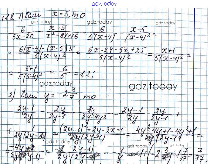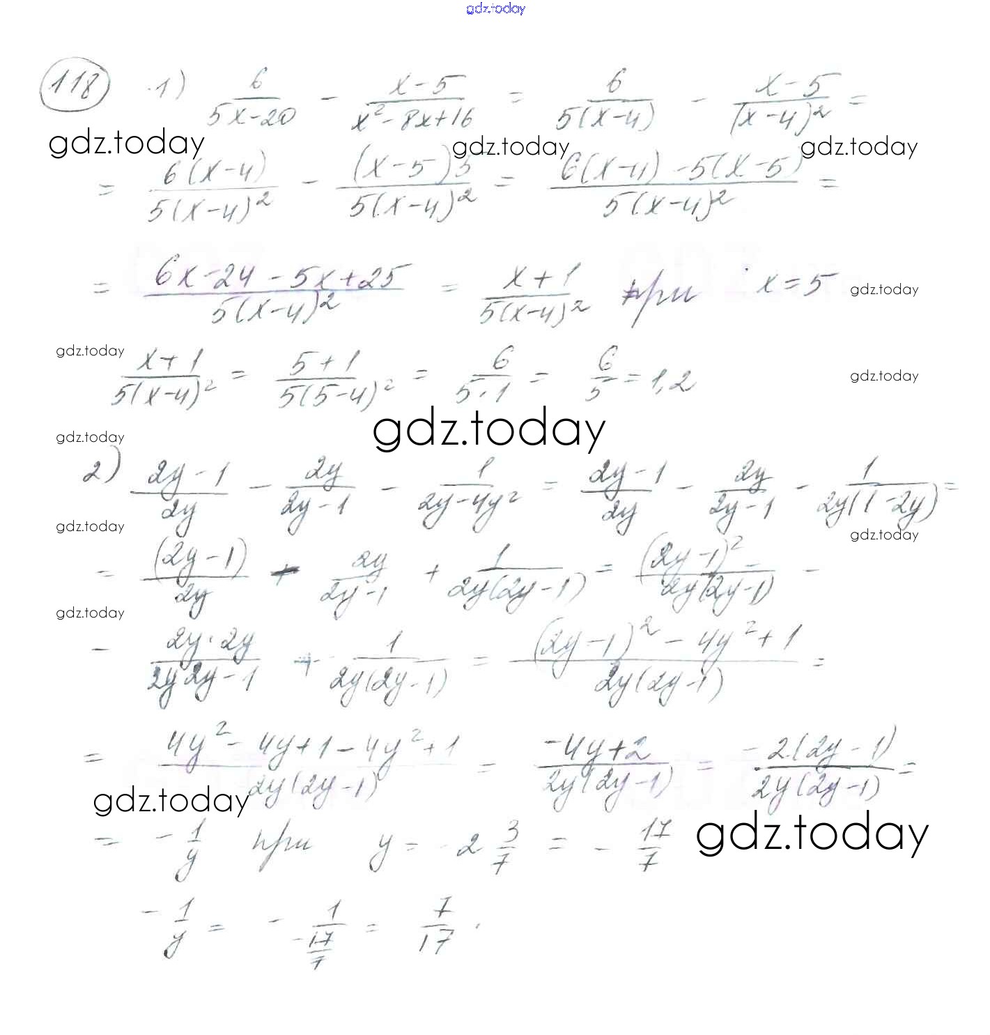 Ответы к §4. Сложение и вычитание рациональных дробей с разными знаменателями Решение к главе 1. Рациональные выражения 118 Учебнику по Алгебре для 8 класса Мерзляк, Полонский Вентана-граф Алгоритм успеха 2016