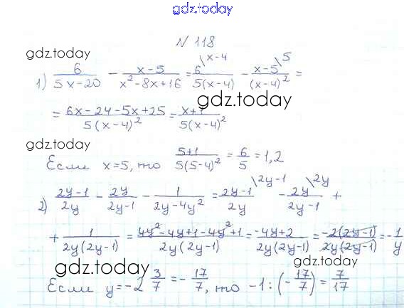 На страницах сайта gdz.today вы найдете учебный и вспомогательный материал, направленный на улучшения знаний школьной программы. ГДЗ - онлайн мир знаний §4. Сложение и вычитание рациональных дробей с разными знаменателями Решение к главе 1. Рациональные выражения 118 Учебнику по Алгебре для 8 класса Мерзляк, Полонский Вентана-граф Алгоритм успеха 2016