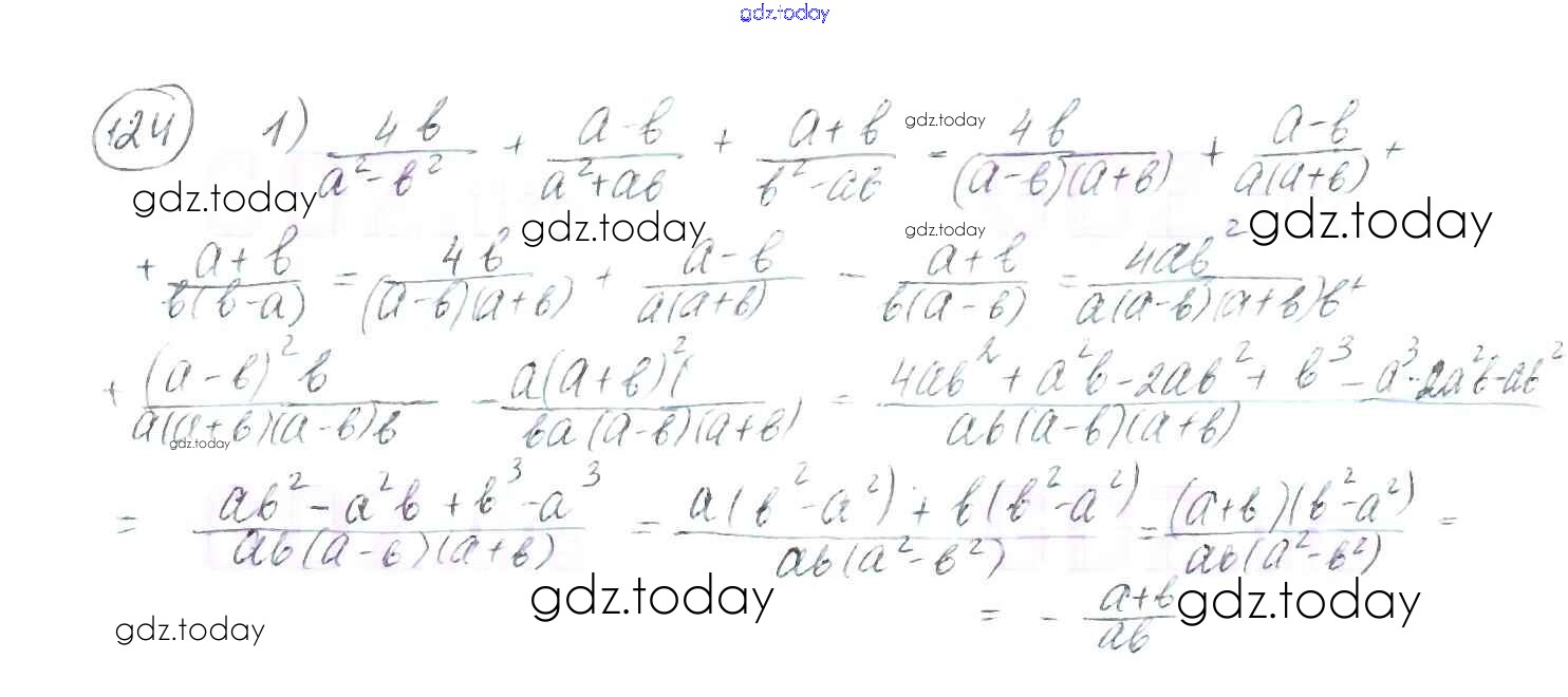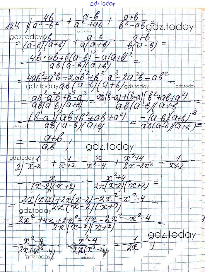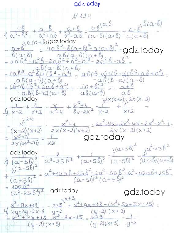 На страницах сайта gdz.today вы найдете учебный и вспомогательный материал, направленный на улучшения знаний школьной программы. ГДЗ - онлайн мир знаний §4. Сложение и вычитание рациональных дробей с разными знаменателями Решение к главе 1. Рациональные выражения 124 Учебнику по Алгебре для 8 класса Мерзляк, Полонский Вентана-граф Алгоритм успеха 2016