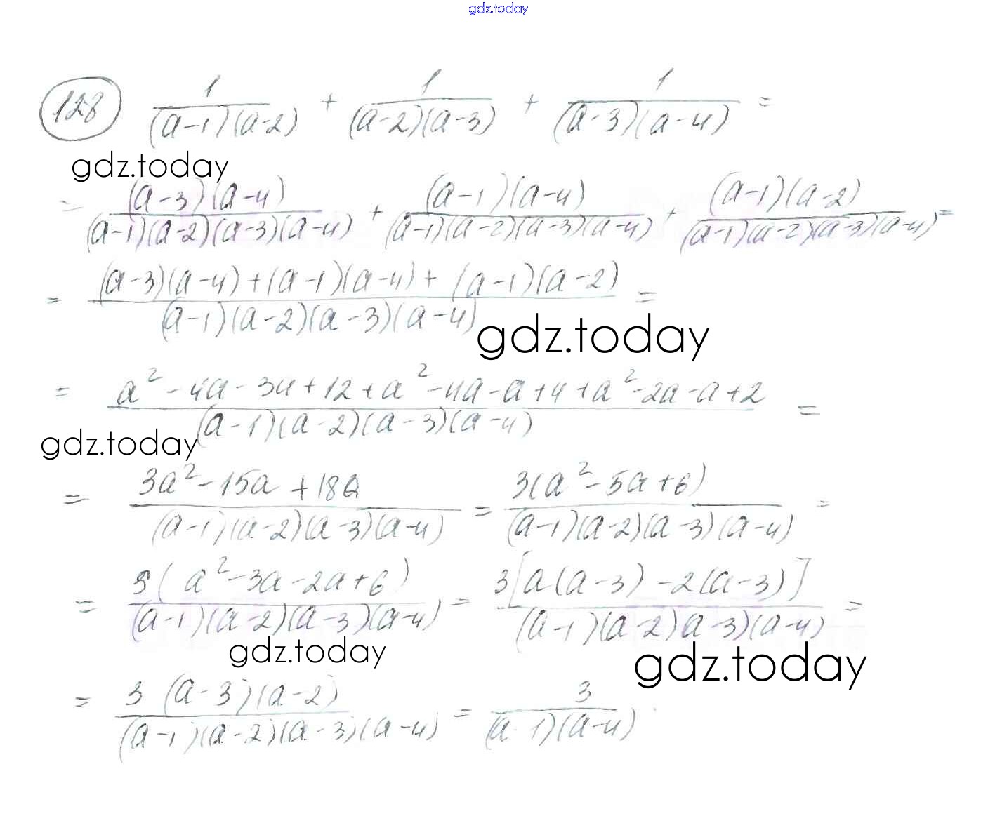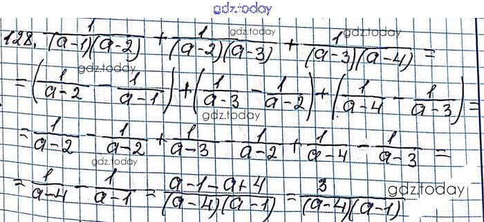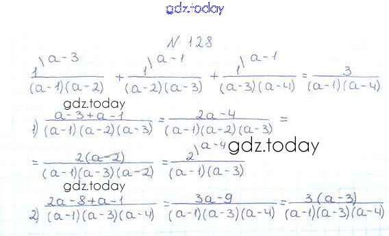 На страницах сайта gdz.today вы найдете учебный и вспомогательный материал, направленный на улучшения знаний школьной программы. ГДЗ - онлайн мир знаний §4. Сложение и вычитание рациональных дробей с разными знаменателями Решение к главе 1. Рациональные выражения 128 Учебнику по Алгебре для 8 класса Мерзляк, Полонский Вентана-граф Алгоритм успеха 2016