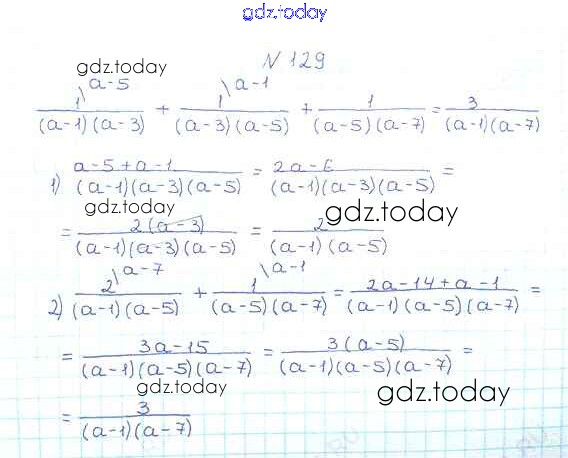 На страницах сайта gdz.today вы найдете учебный и вспомогательный материал, направленный на улучшения знаний школьной программы. ГДЗ - онлайн мир знаний §4. Сложение и вычитание рациональных дробей с разными знаменателями Решение к главе 1. Рациональные выражения 129 Учебнику по Алгебре для 8 класса Мерзляк, Полонский Вентана-граф Алгоритм успеха 2016