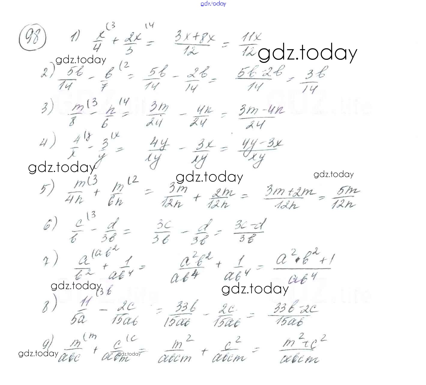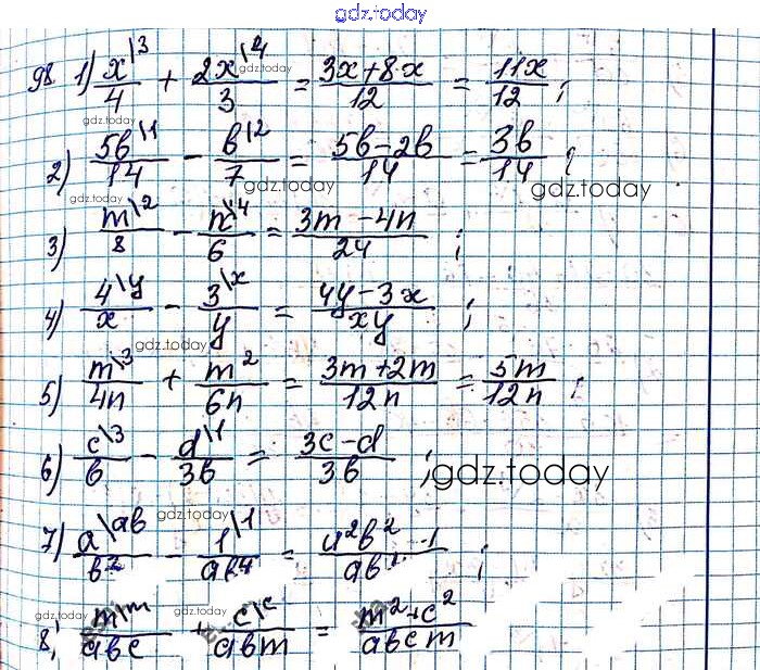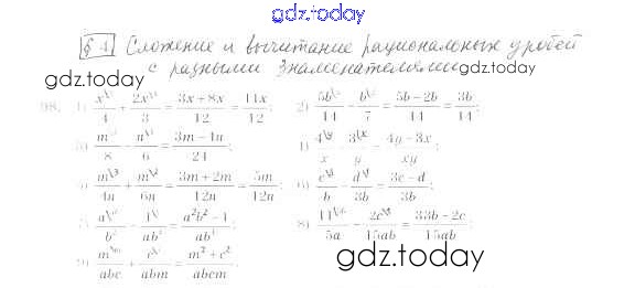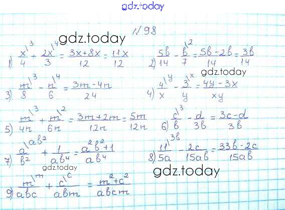 На страницах сайта gdz.today вы найдете учебный и вспомогательный материал, направленный на улучшения знаний школьной программы. ГДЗ - онлайн мир знаний §4. Сложение и вычитание рациональных дробей с разными знаменателями Решение к главе 1. Рациональные выражения 98 Учебнику по Алгебре для 8 класса Мерзляк, Полонский Вентана-граф Алгоритм успеха 2016