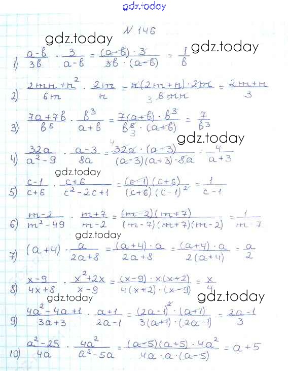На страницах сайта gdz.today вы найдете учебный и вспомогательный материал, направленный на улучшения знаний школьной программы. ГДЗ - онлайн мир знаний §5. Умножение и деление рациональных дробей. Возведение рациональной дроби в степень Решение к главе 1. Рациональные выражения 146 Учебнику по Алгебре для 8 класса Мерзляк, Полонский Вентана-граф Алгоритм успеха 2016