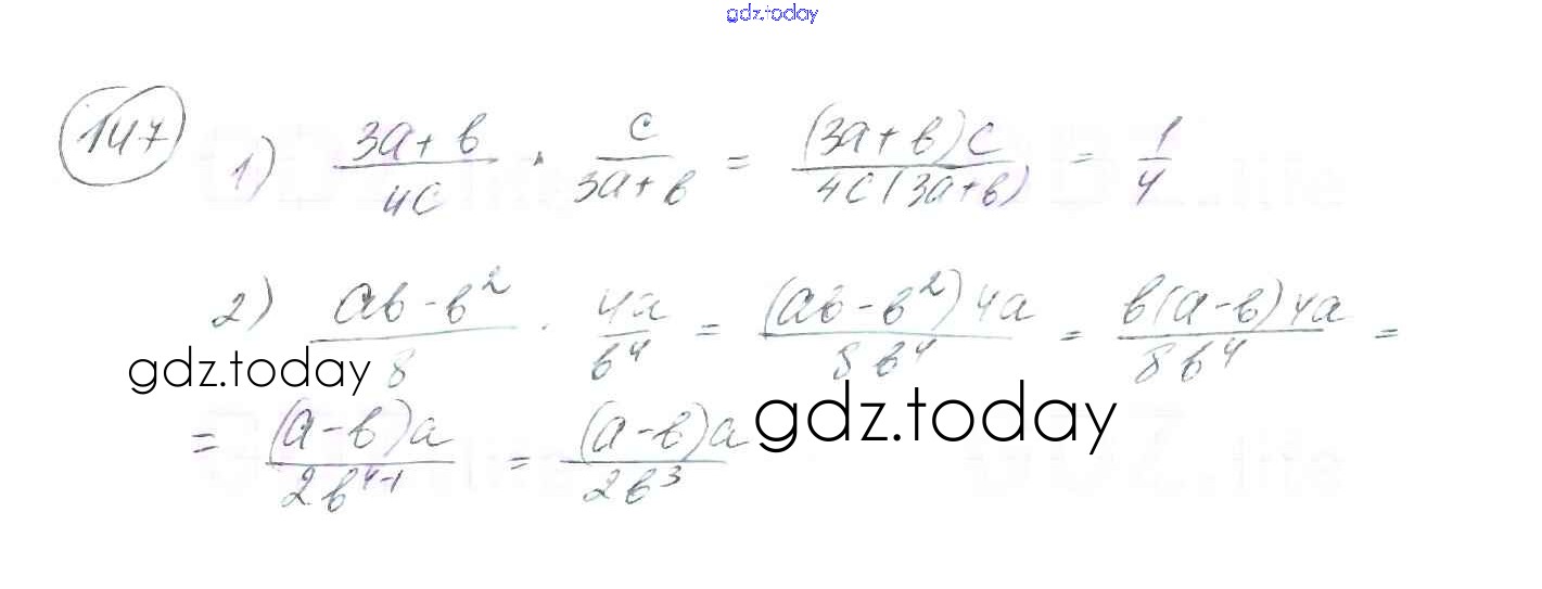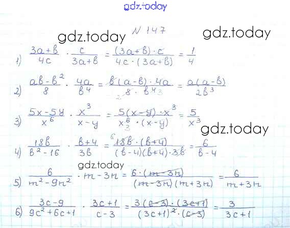 На страницах сайта gdz.today вы найдете учебный и вспомогательный материал, направленный на улучшения знаний школьной программы. ГДЗ - онлайн мир знаний §5. Умножение и деление рациональных дробей. Возведение рациональной дроби в степень Решение к главе 1. Рациональные выражения 147 Учебнику по Алгебре для 8 класса Мерзляк, Полонский Вентана-граф Алгоритм успеха 2016