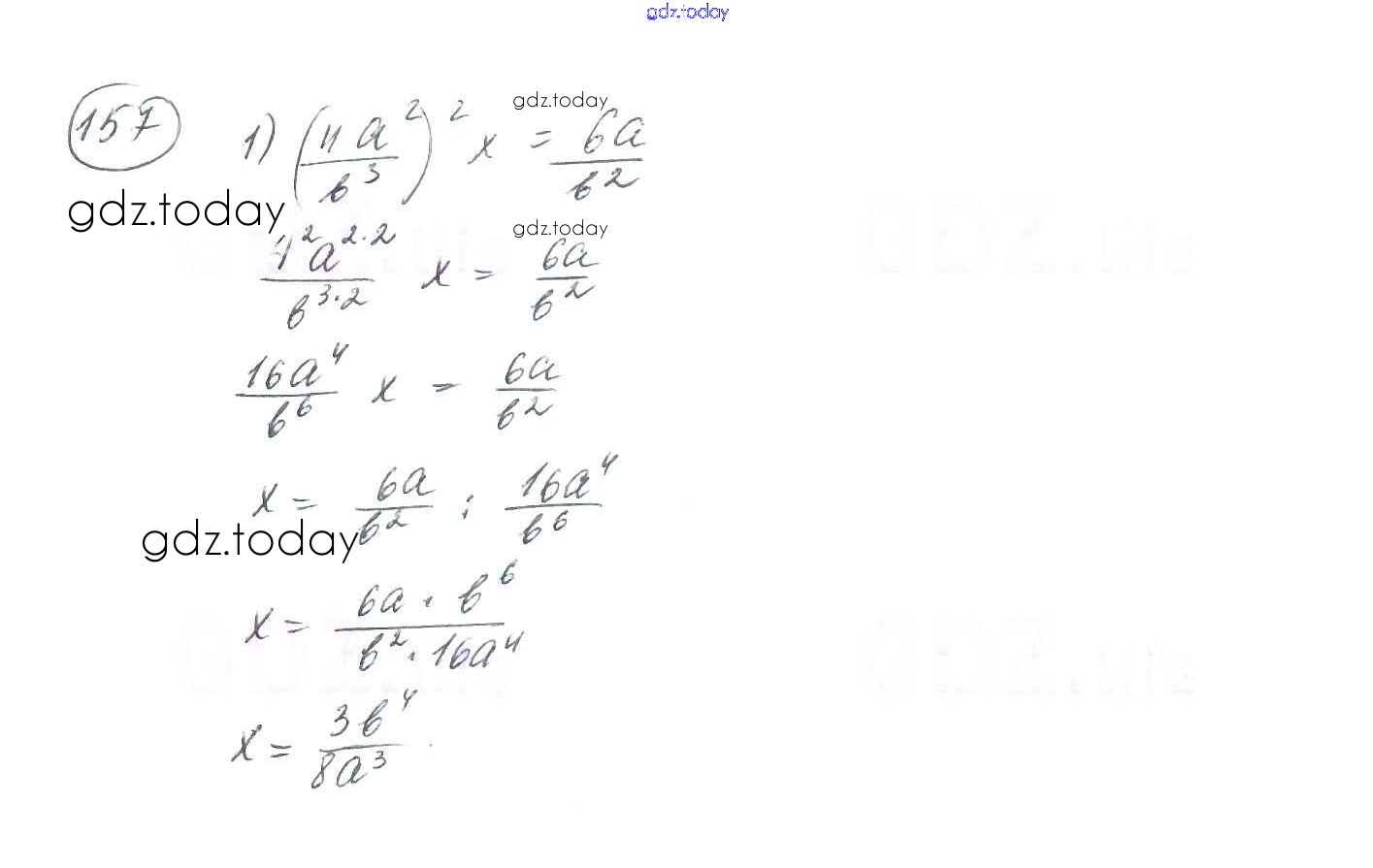 На страницах сайта gdz.today вы найдете учебный и вспомогательный материал, направленный на улучшения знаний школьной программы. ГДЗ - онлайн мир знаний §5. Умножение и деление рациональных дробей. Возведение рациональной дроби в степень Решение к главе 1. Рациональные выражения 157 Учебнику по Алгебре для 8 класса Мерзляк, Полонский Вентана-граф Алгоритм успеха 2016