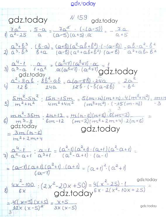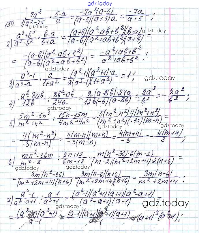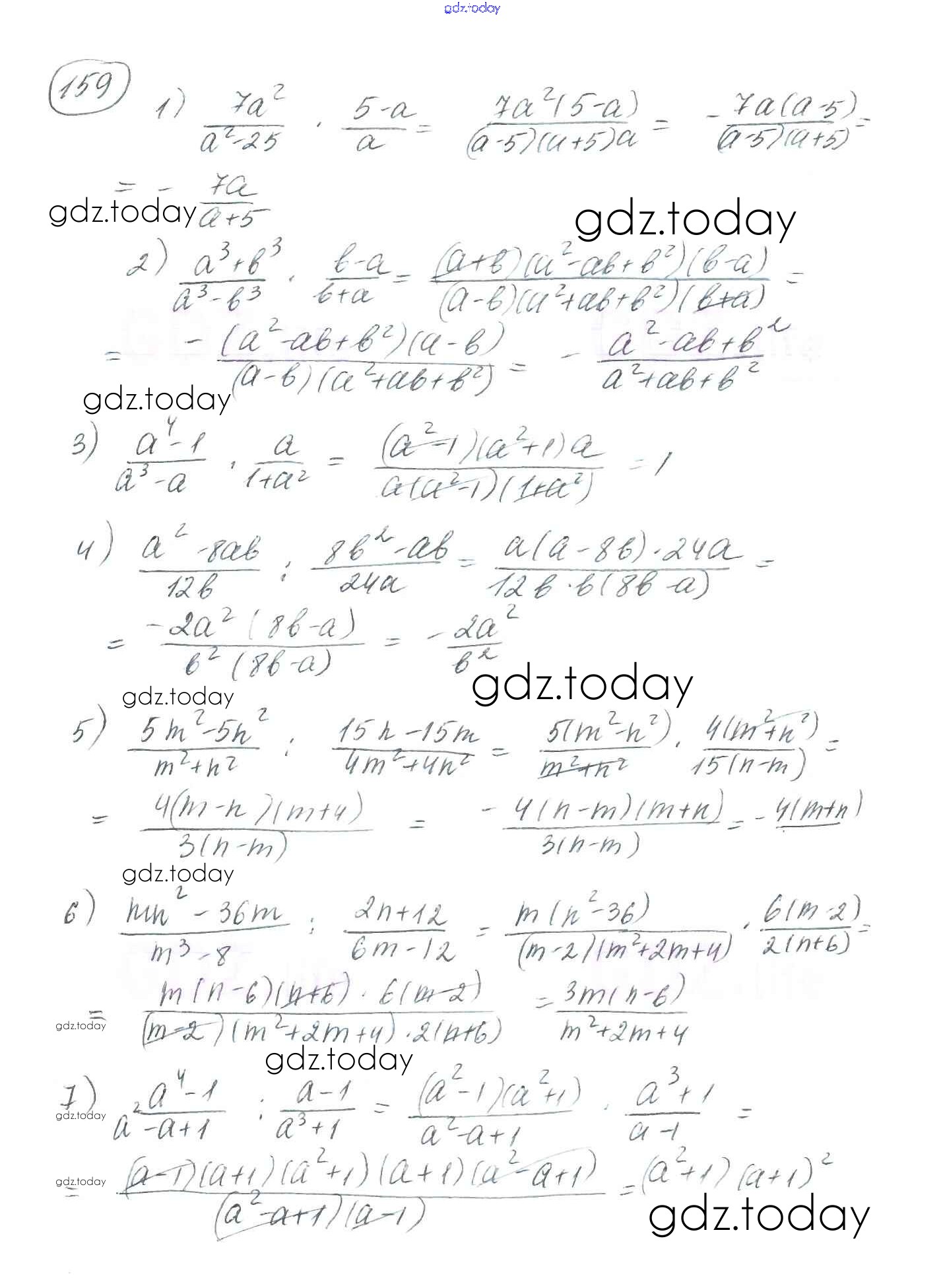 Ответы к §5. Умножение и деление рациональных дробей. Возведение рациональной дроби в степень Решение к главе 1. Рациональные выражения 159 Учебнику по Алгебре для 8 класса Мерзляк, Полонский Вентана-граф Алгоритм успеха 2016
