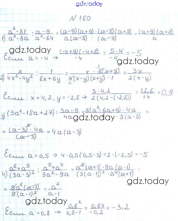Ответы к §5. Умножение и деление рациональных дробей. Возведение рациональной дроби в степень Решение к главе 1. Рациональные выражения 160 Учебнику по Алгебре для 8 класса Мерзляк, Полонский Вентана-граф Алгоритм успеха 2016