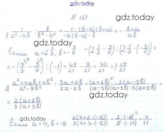 Ответы к §5. Умножение и деление рациональных дробей. Возведение рациональной дроби в степень Решение к главе 1. Рациональные выражения 161 Учебнику по Алгебре для 8 класса Мерзляк, Полонский Вентана-граф Алгоритм успеха 2016
